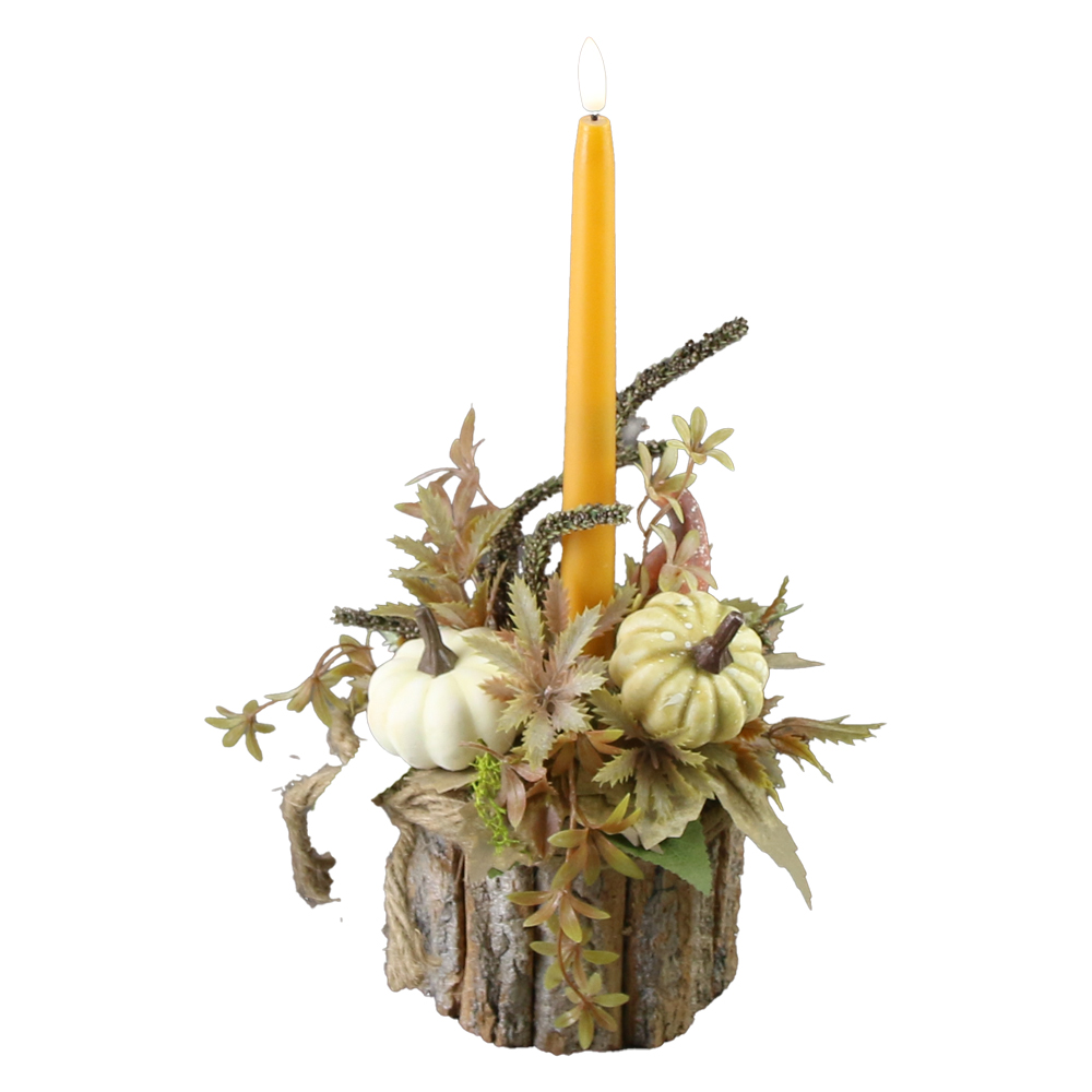 Aranjament de toamna cu dovlecei si lumanare cu led, 35 CM
