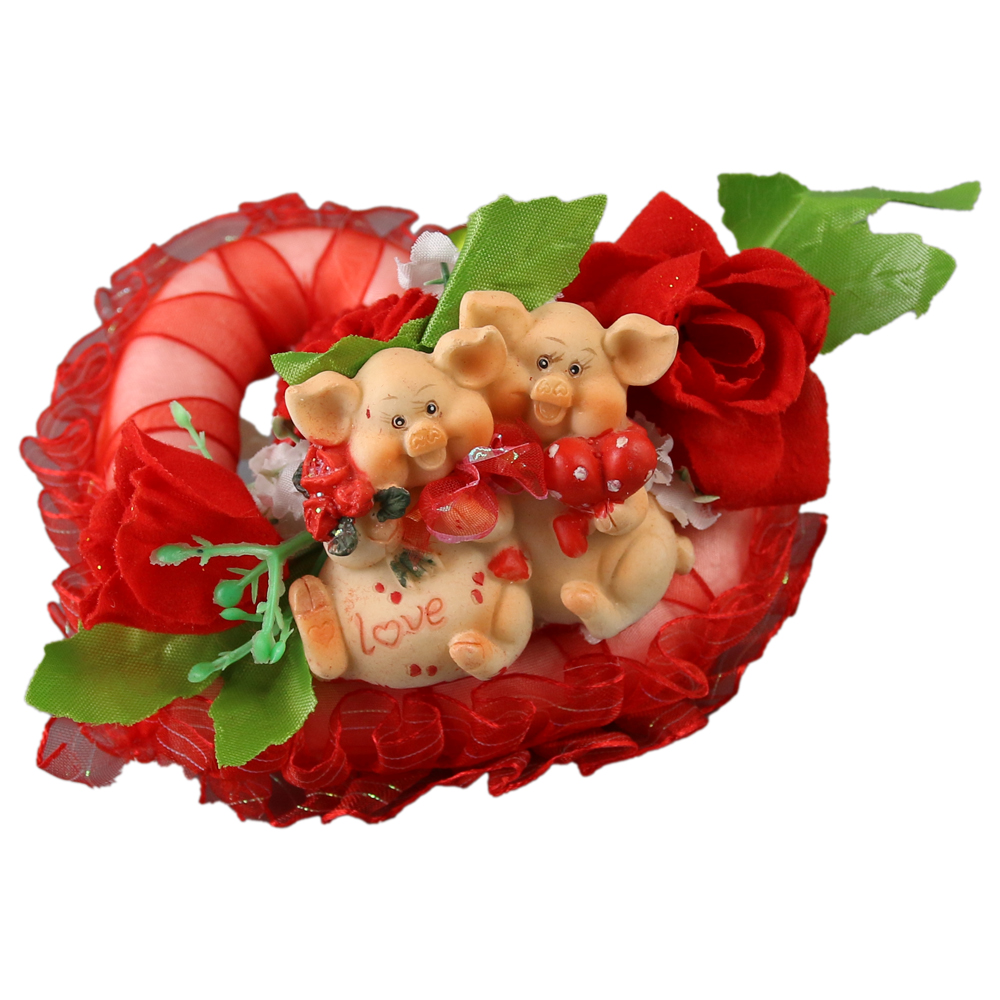 Aranjament decorativ Valentin cu purcelusi Love 10×12 cm