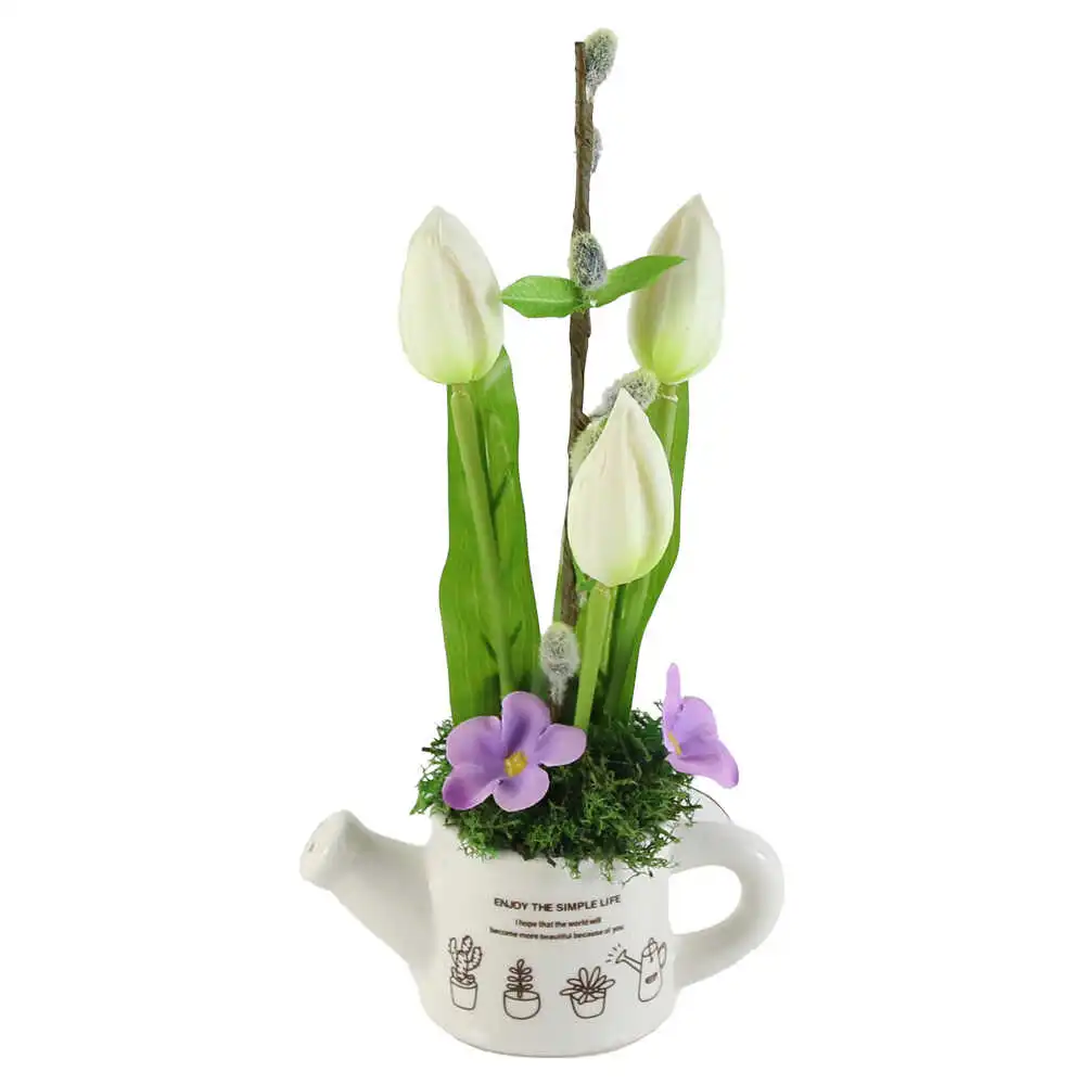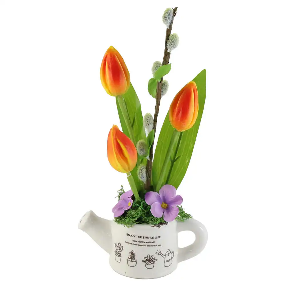 Aranjament floral cu lalele, 24 CM, cu ghiveci tip stropitoare