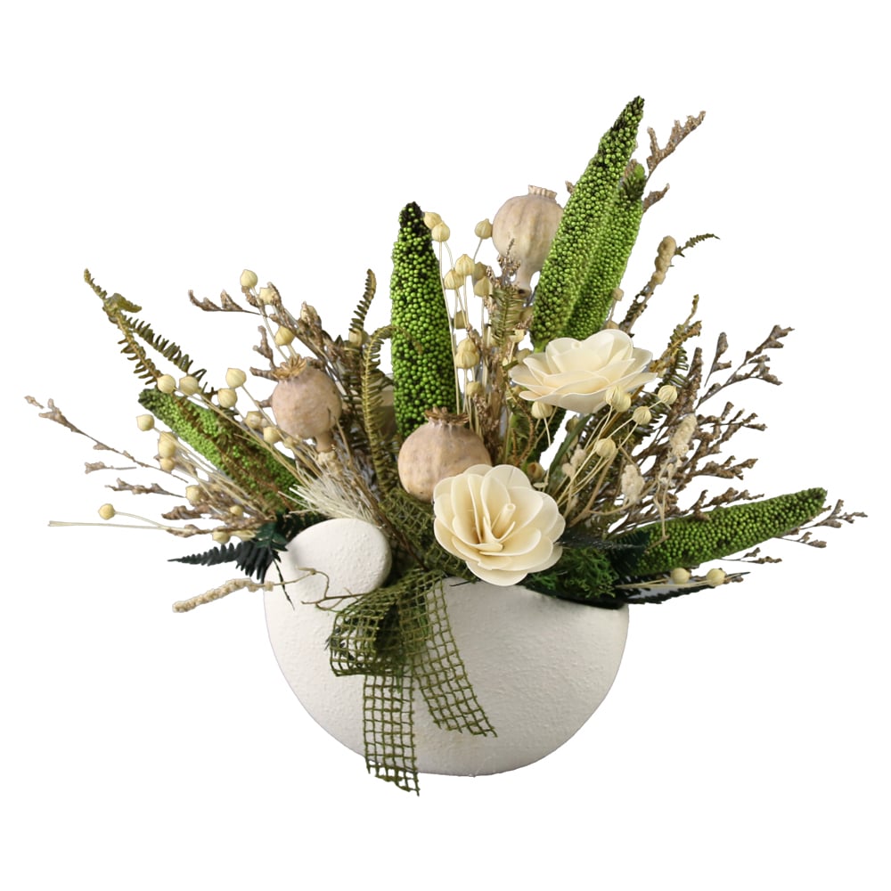 Aranjament floral cu plante uscate in ghiveci ceramica 30 cm