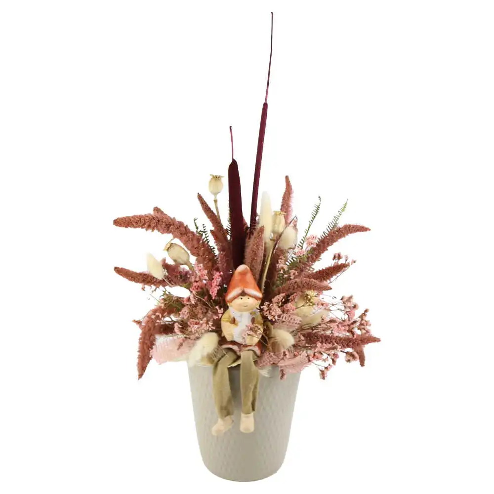 Aranjament floral din plante uscate si figurina in ghiveci ceramic 45 CM