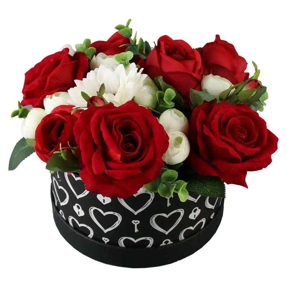 Aranjament floral in cutie rotunda 25 CM, trandafiri