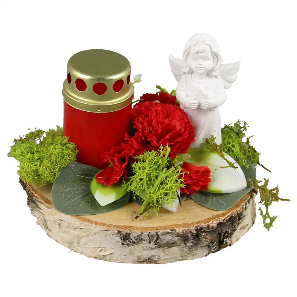 Aranjament floral pentru cimitir cu candela si ingeras 15 CM