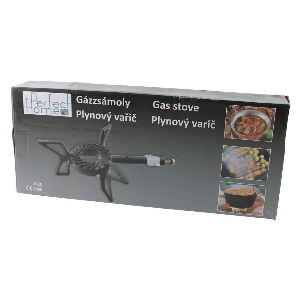 Arzator de gaz realizat din fonta, marca Perfect Home. Ideal pentru gatit in aer liber, compatibil cu diverse vase si utilizari profesionale sau casnice.