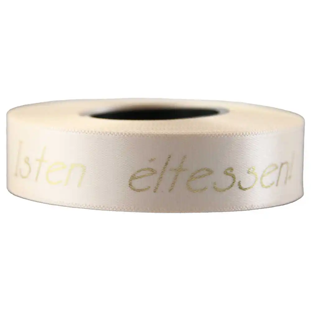 Banda satinata „Isten eltessen!” 15 mmx10 m, auriu