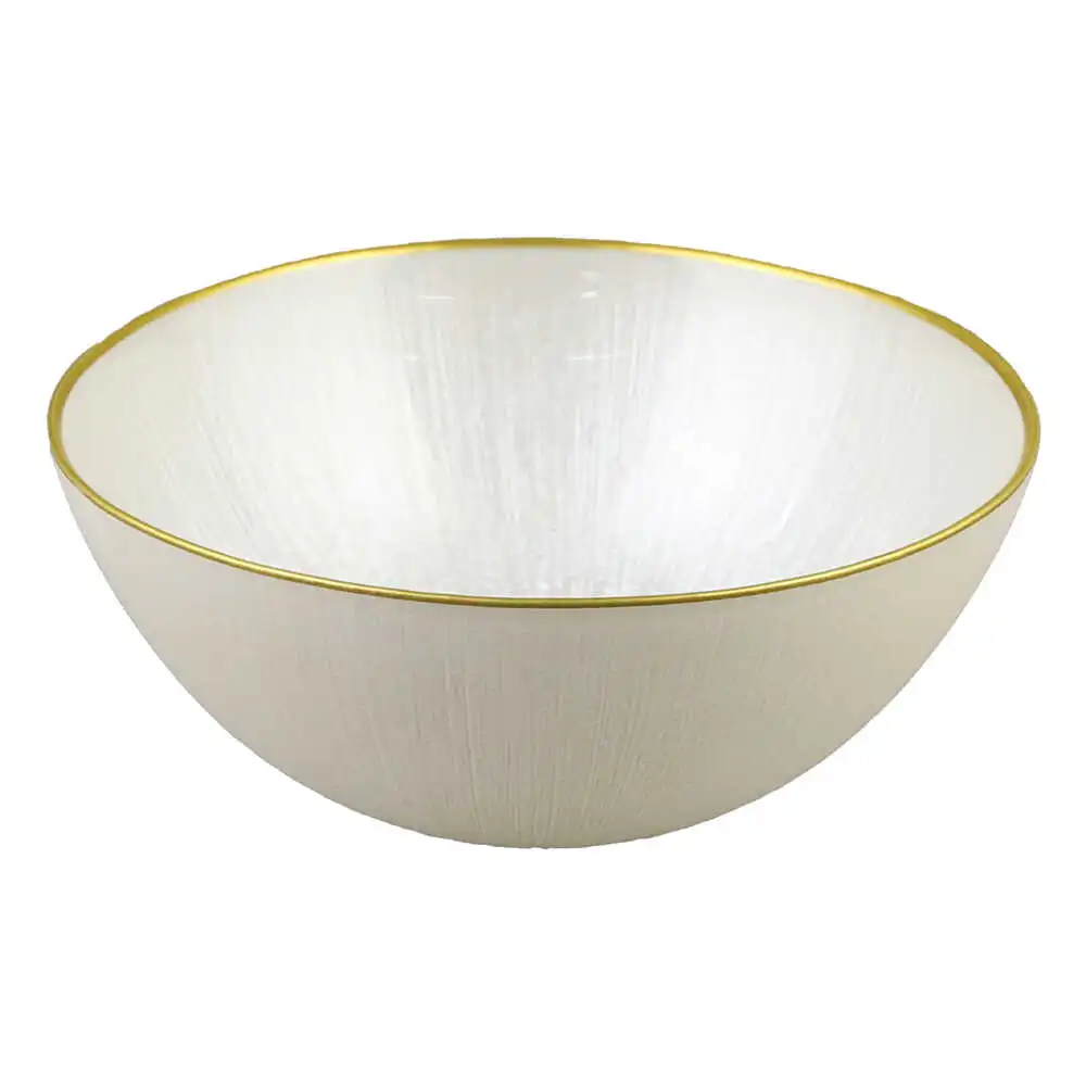 Bol din sticla Alb sidefat, cu margine aurie, 21×8.5 CM