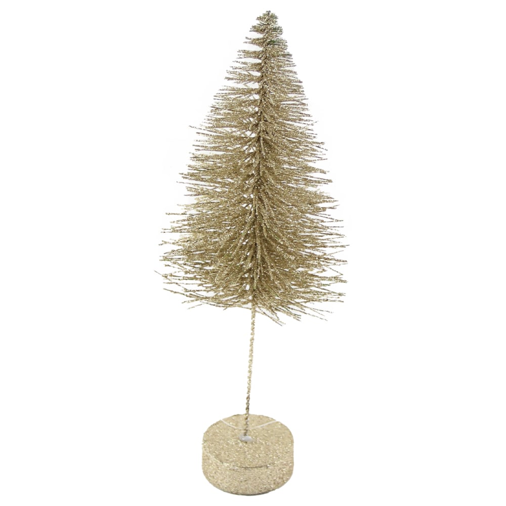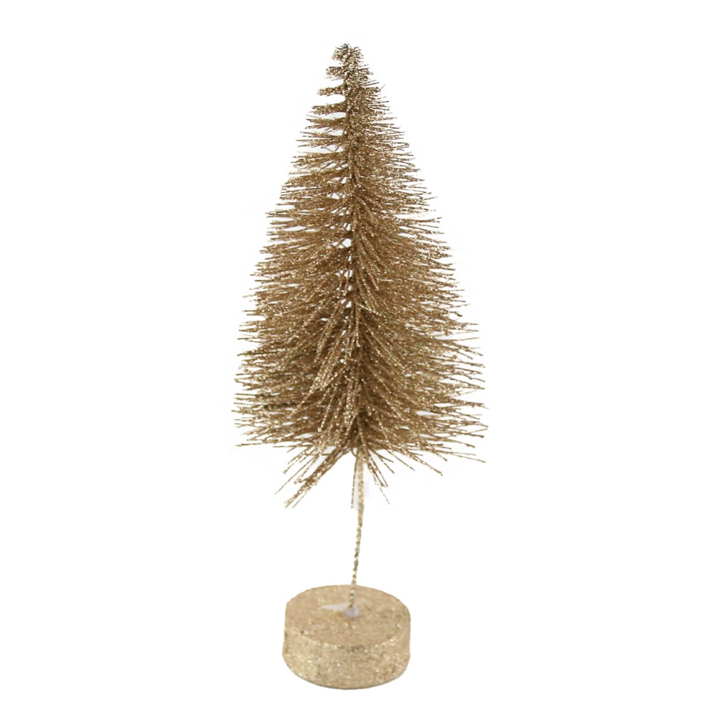Brad din sarma pe suport din plastic 25 CM, Gold/Maro cu glitter