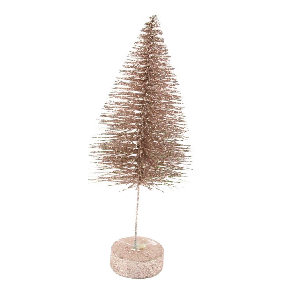 Brad din sarma pe suport din plastic 25 CM, Rosegold/Pink cu glitter