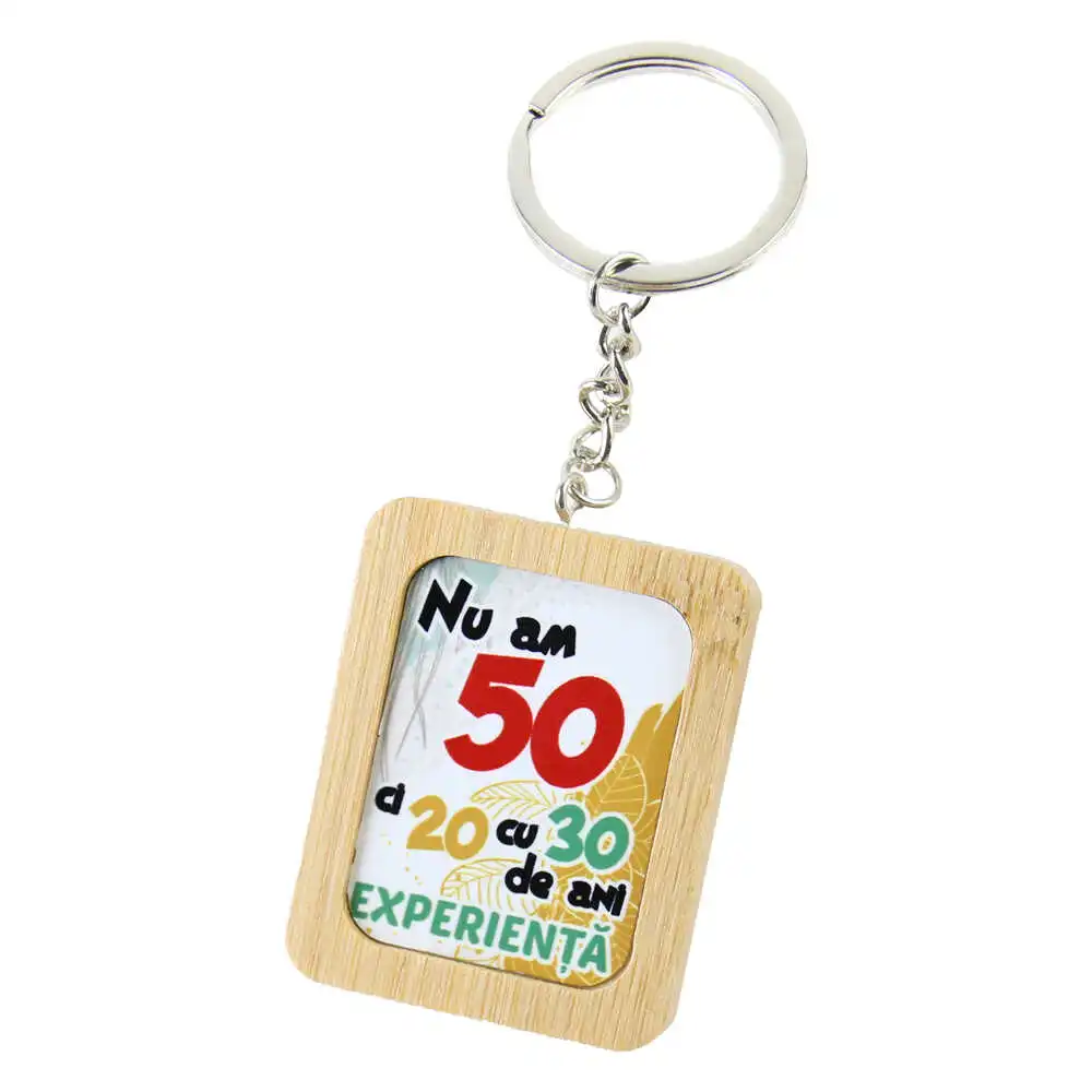 Breloc din bambus „Nu am 50…”, 4×5 CM