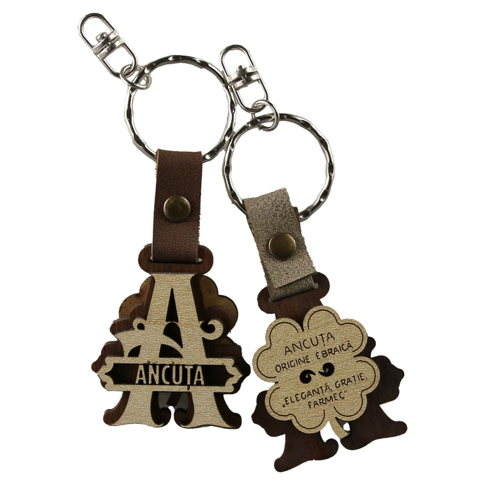 Breloc din lemn, personalizat cu diferite nume si explicatia originii fiecaruia. Perfect pentru cadouri unice si pastrarea amintirilor speciale.