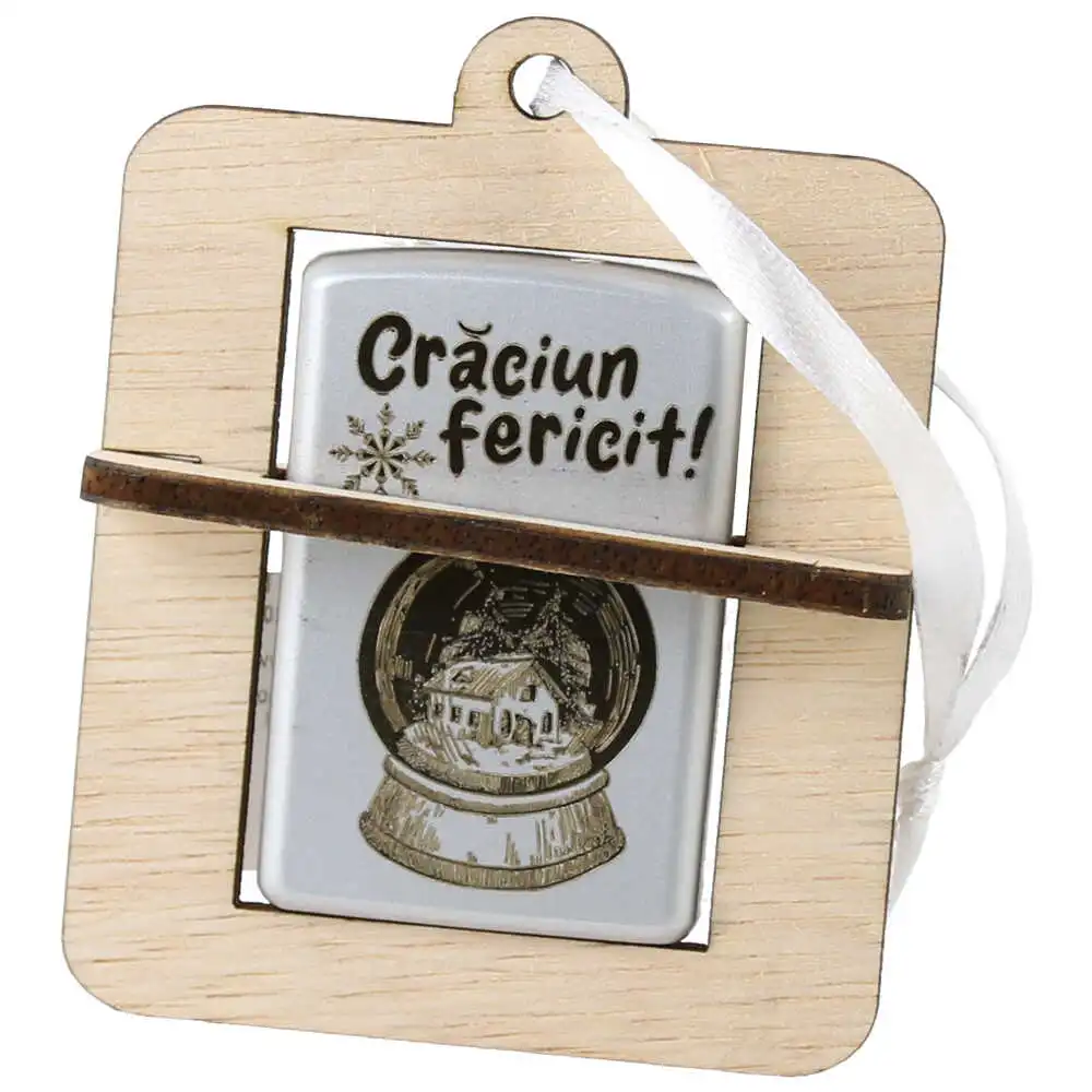 Bricheta metalica cu suport din lemn „Craciun fericit!”, cu gravura laser