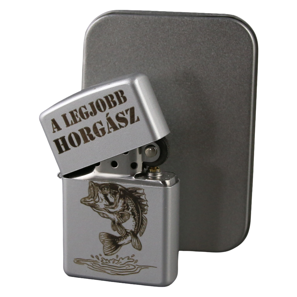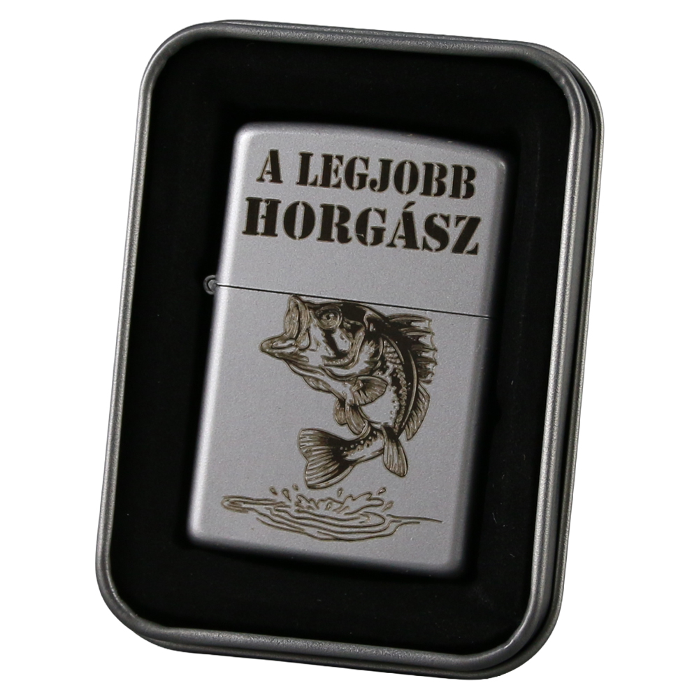 Bricheta metalica gravata „A legjobb Horgasz” 3.5 x 5.5 cm, argintiu