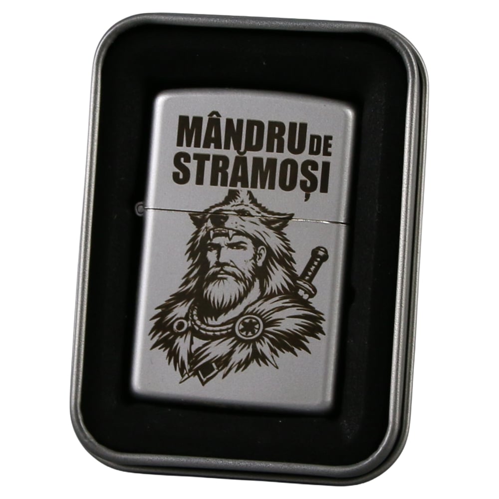 Bricheta metalica gravata „Mandru de Stramosi” 3.5 x 5.5 cm, argintiu