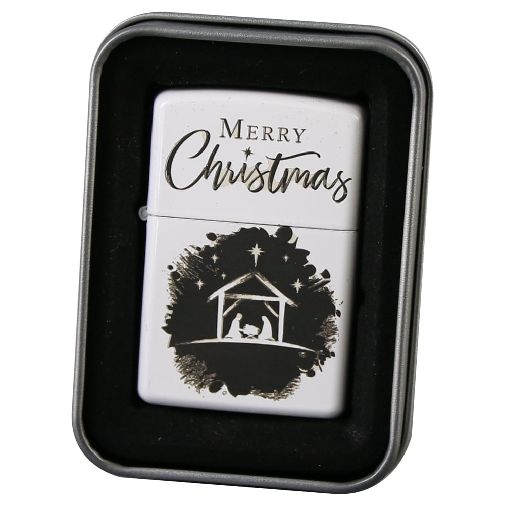 Bricheta metalica „Merry Christmas”, 3.5×5 CM, alb