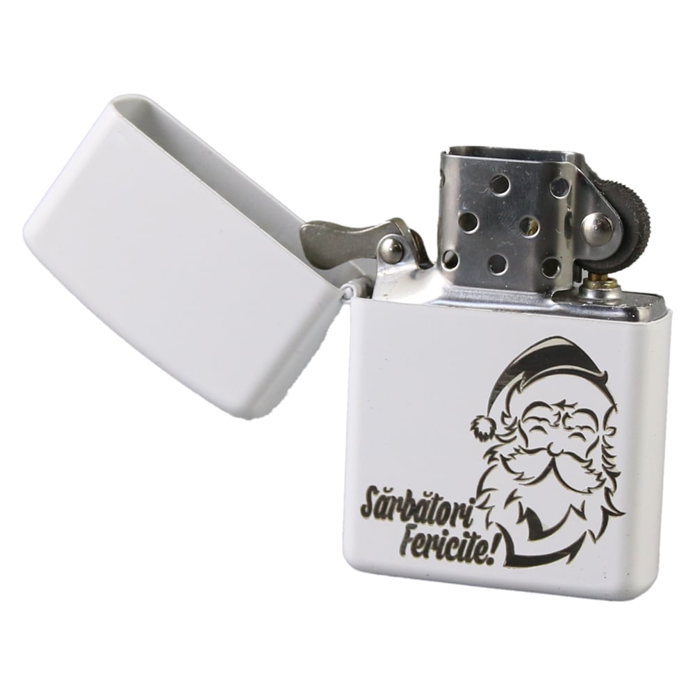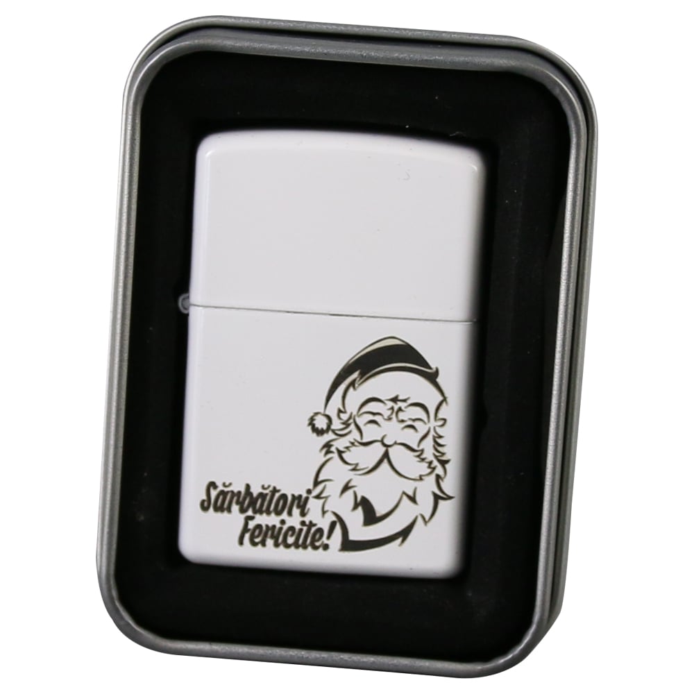 Bricheta metalica „Sarbatori Fericite”, 3.5×5 CM, alb, Mos Craciun