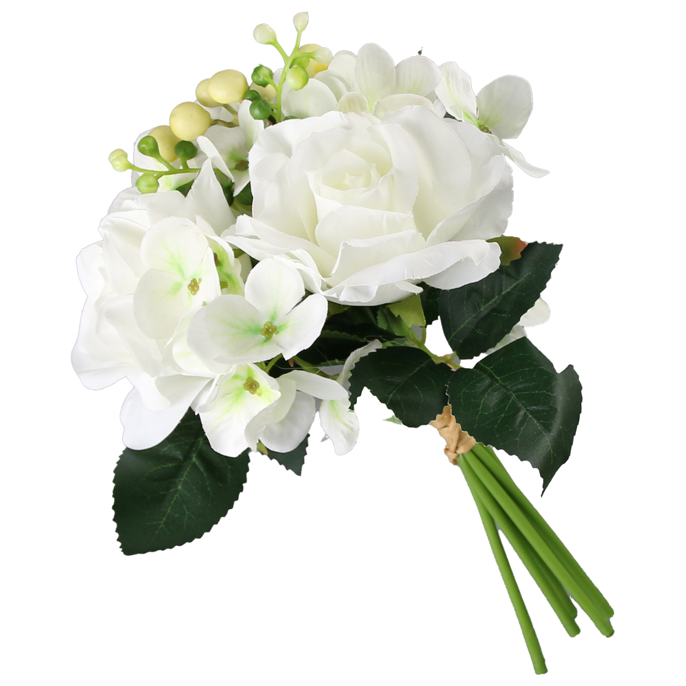 Buchet artificial cu hortensie si bobite 30 cm, alb