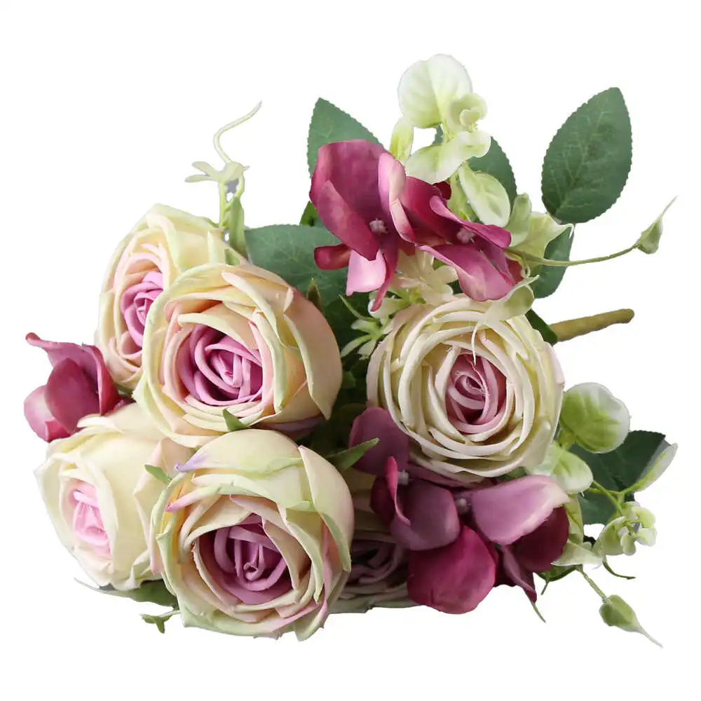 Buchet artificial cu trandafiri, 42 cm, culori variate