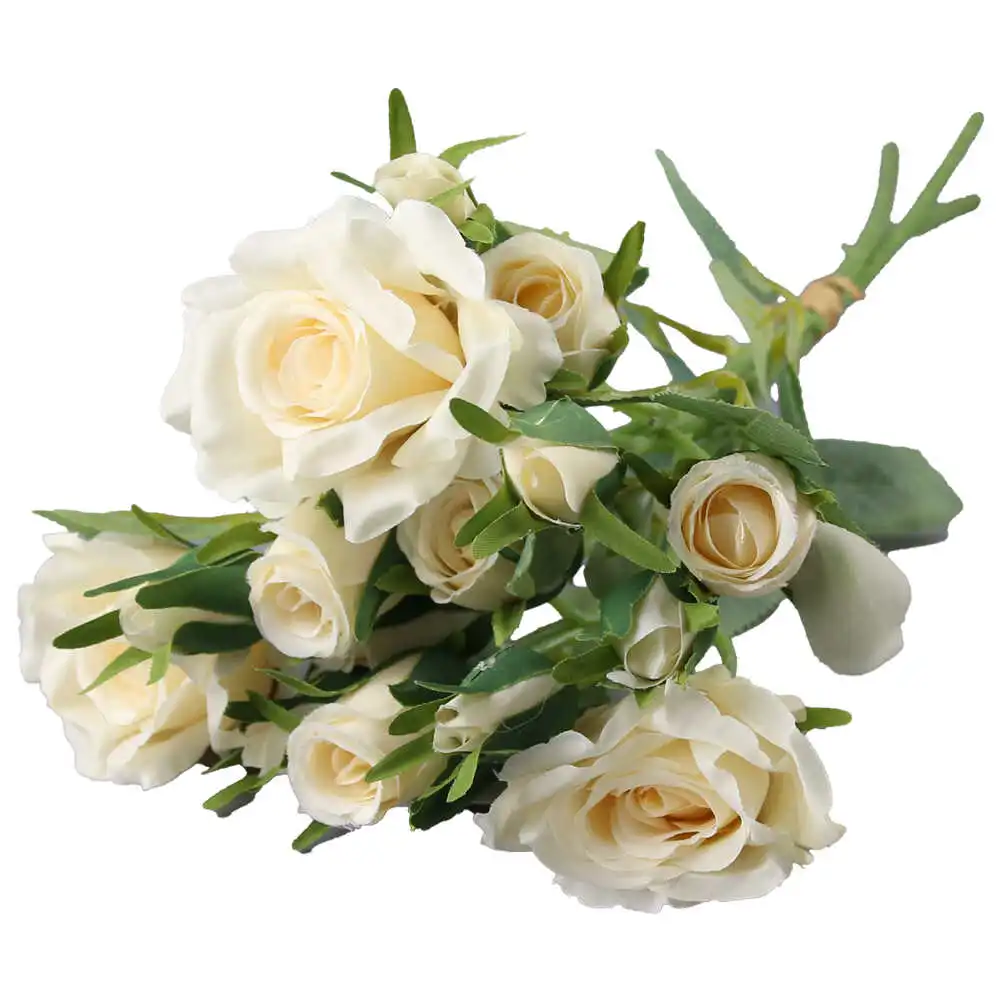 Buchet artificial cu trandafiri 43 cm, Crem/Alb