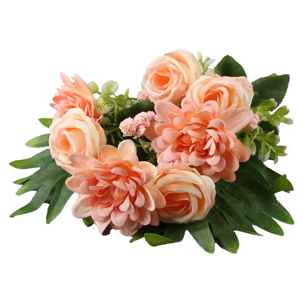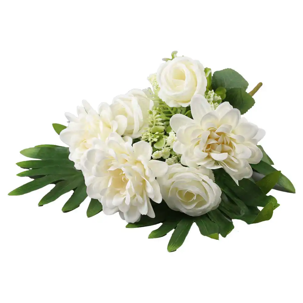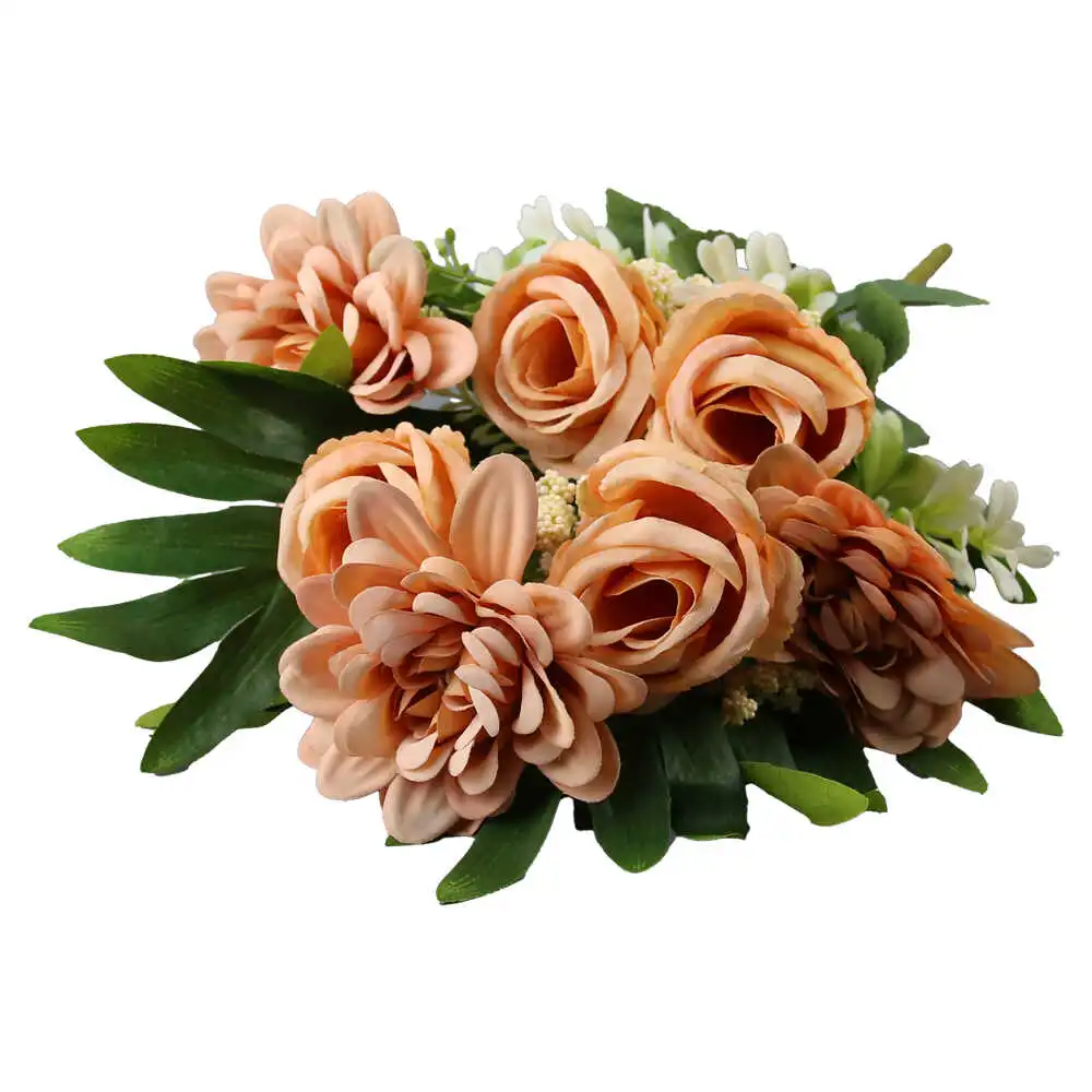 Buchet artificial cu trandafiri si frunze verzi, 40 cm