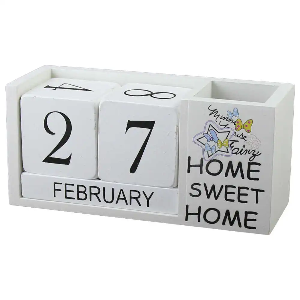 Calendar perpetuu din lemn, cu suport creioane 19×9 CM – Home sweet home