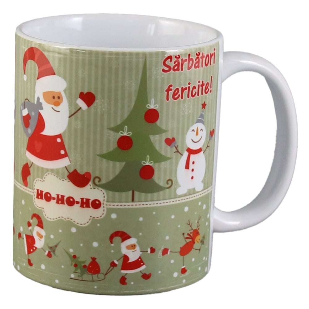 Cana ceramica 330 ml, „Sarbatori Fericite”, Mos Craciun & Om de zapada