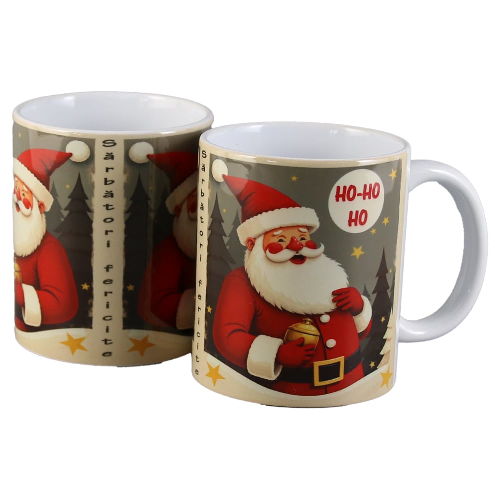 Cana ceramica 330 ml, „Sarbatori Fericite”, Mos Craciun, vintage