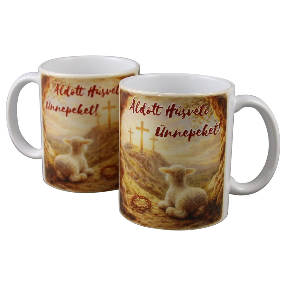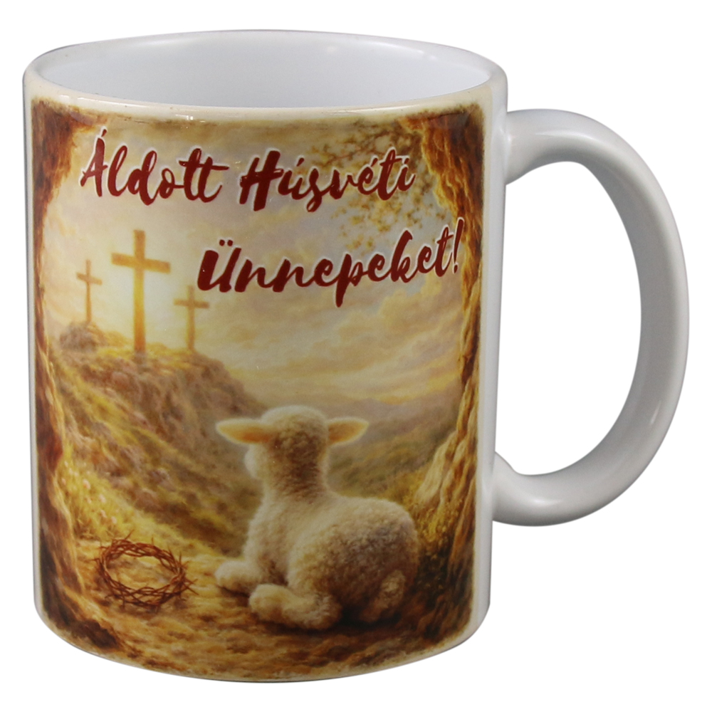 Cana ceramica de Paste „Aldott Husveti Unnepeket!”, 330 ml, Golgota
