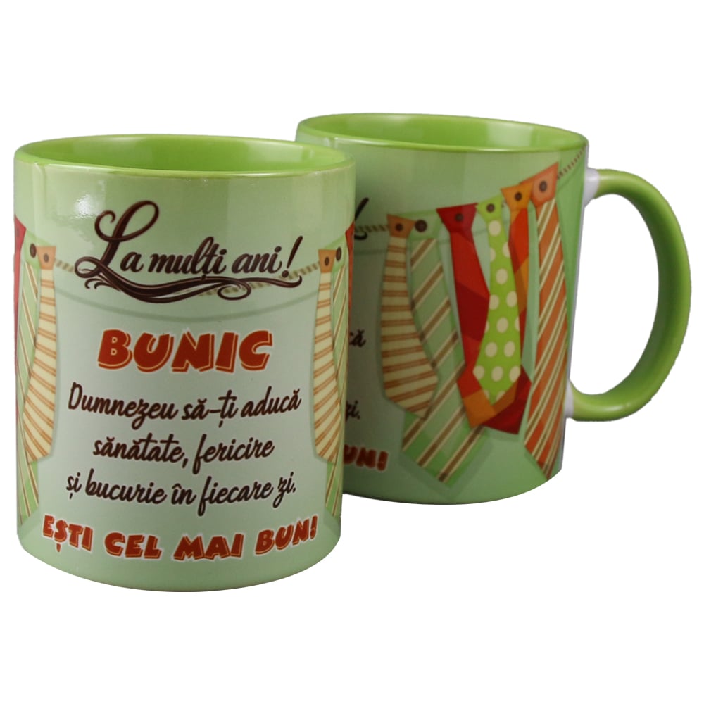 Cana ceramica „La multi ani! Bunic…esti cel mai bun!”, 330 ml, cravate