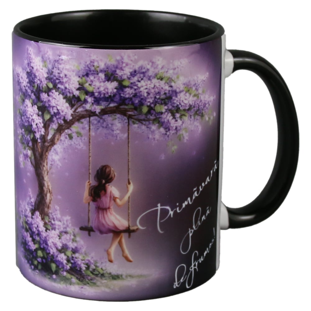 Cana ceramica „Primavara plina de frumos!”, 330 ml, fetita pe leaganCana ceramica „Primavara plina de frumos!”, 330 ml, fetita la leagan
