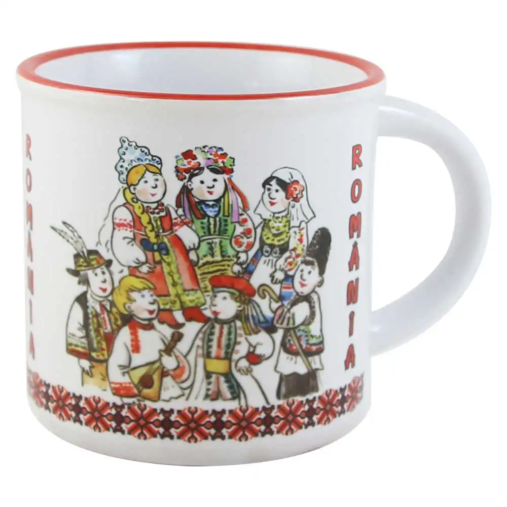 Cana ceramica Romania 280 ml, Vintage, oameni in port popular