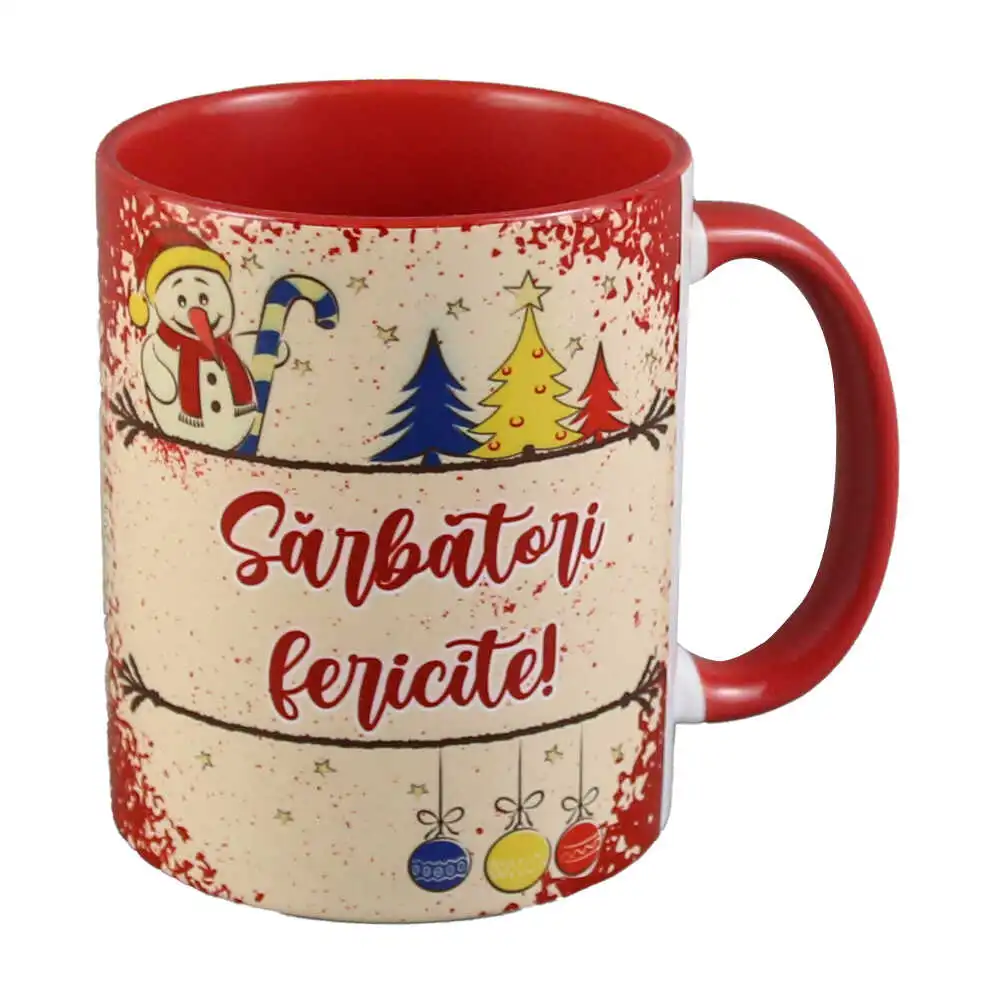 Cana ceramica „Sarbatori Fericite!”, 330 ml, Tricolor