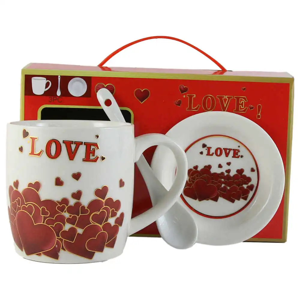 Cana cu farfurie si lingurita, din ceramica „Love” – inimioare