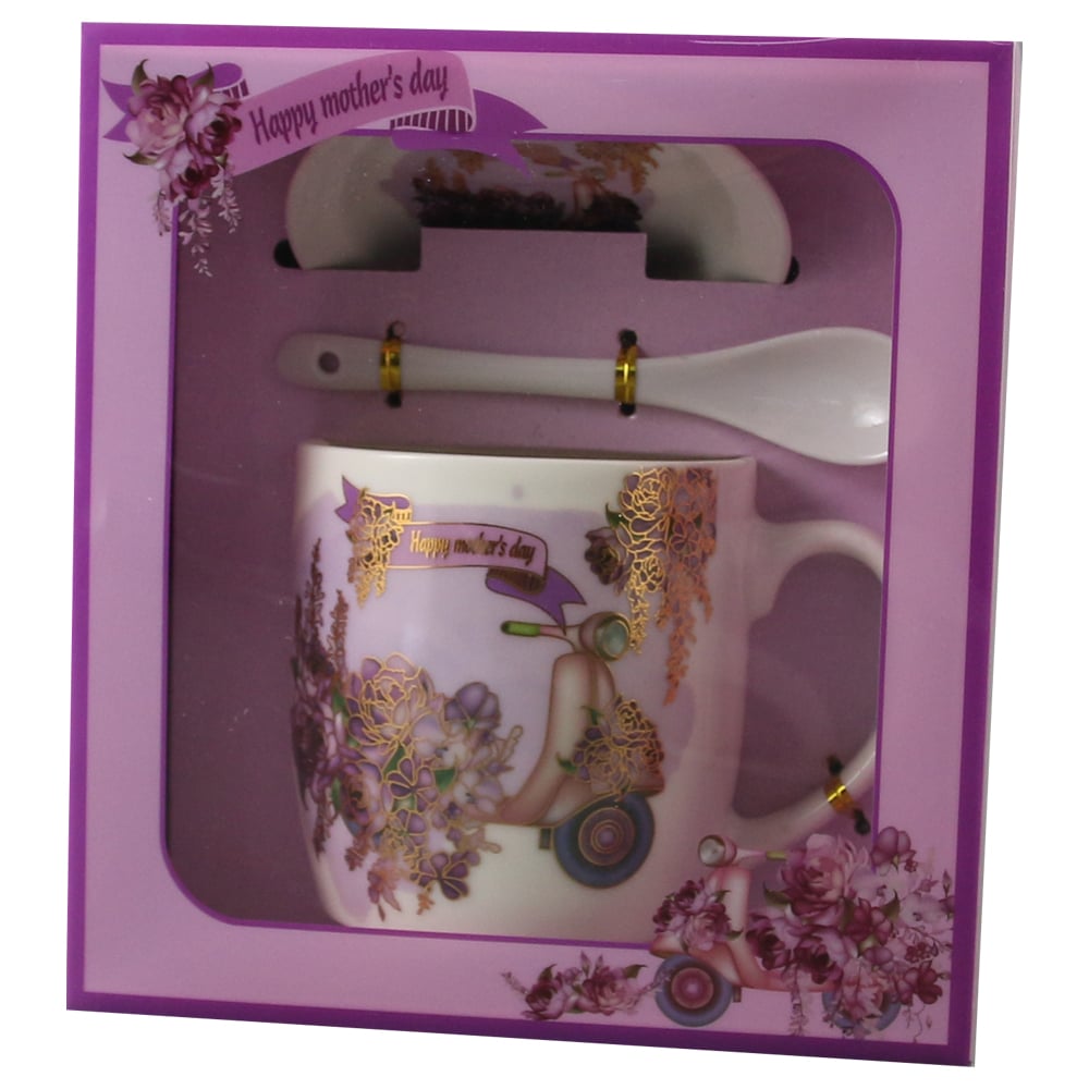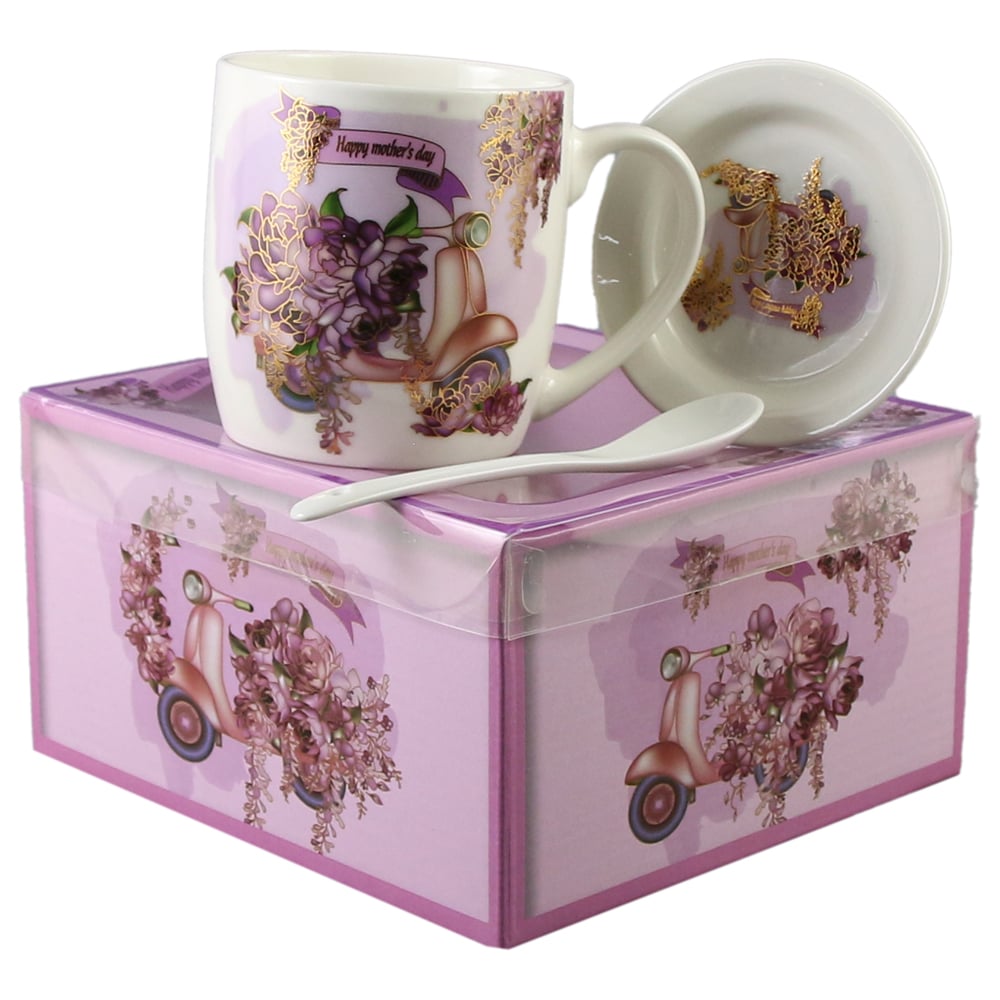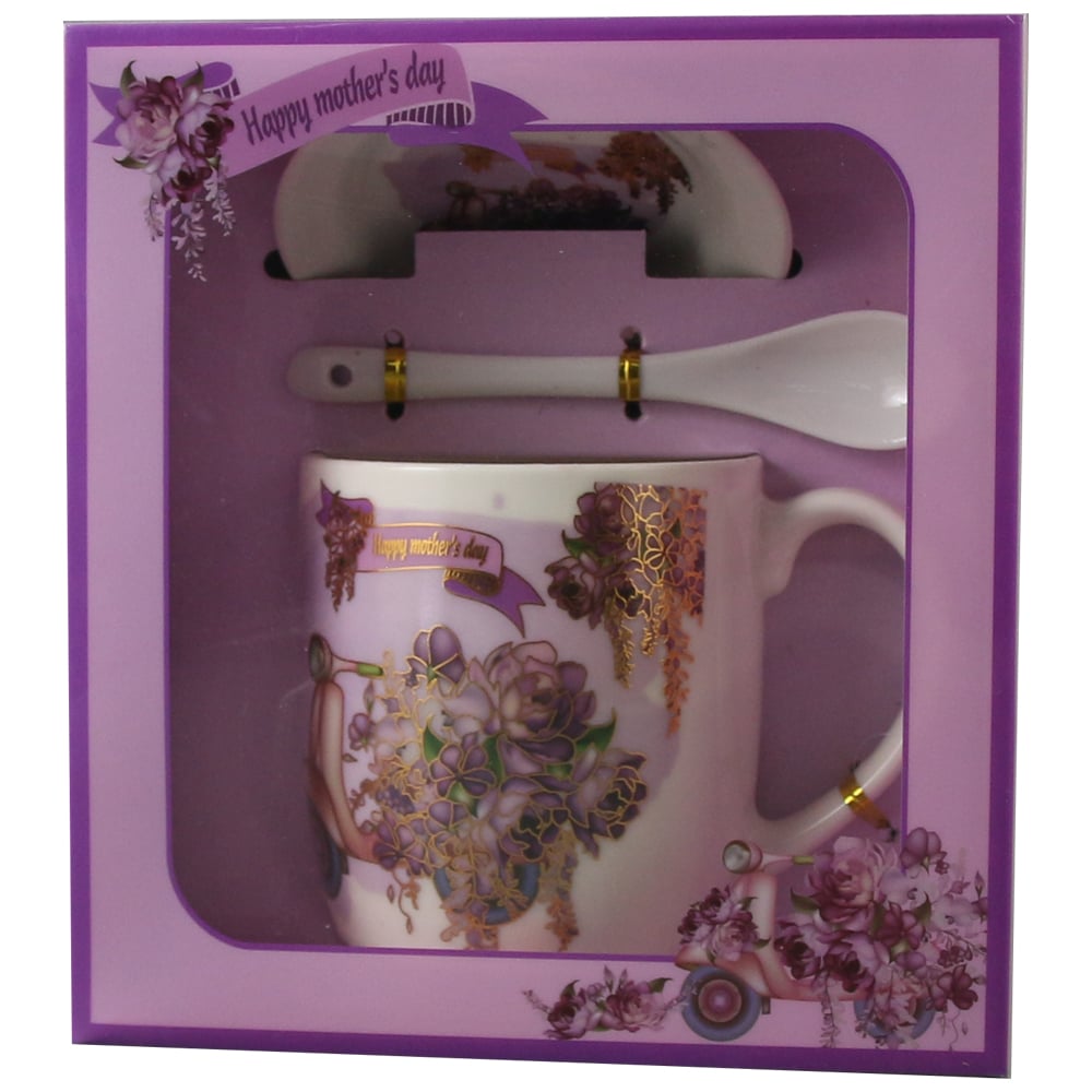 Cana cu lingurita, din ceramica „Happy Mother’s day” 300 ml, Floral