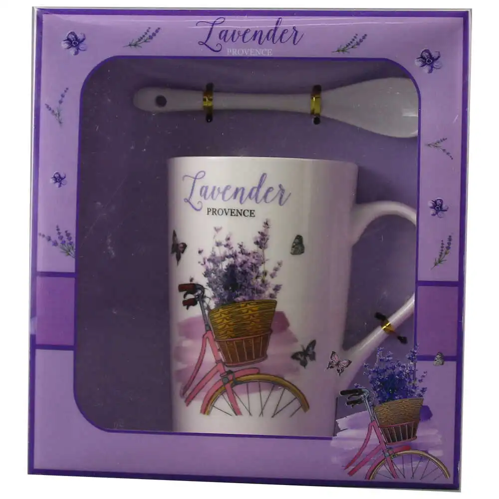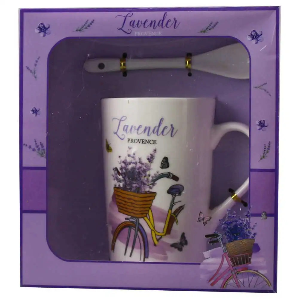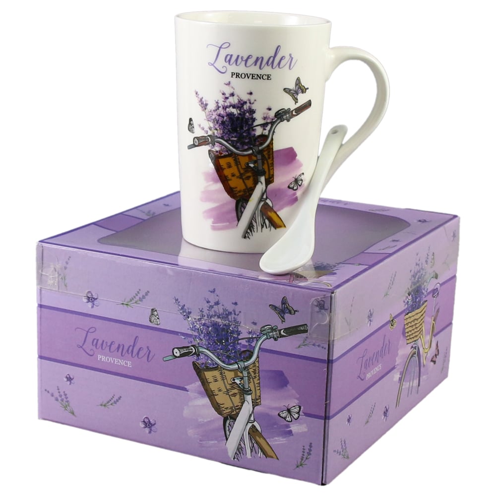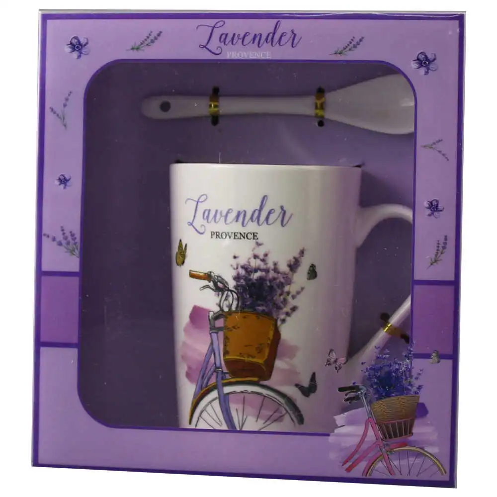 Cana cu lingurita, din ceramica „Lavender Provence”, 300 ml