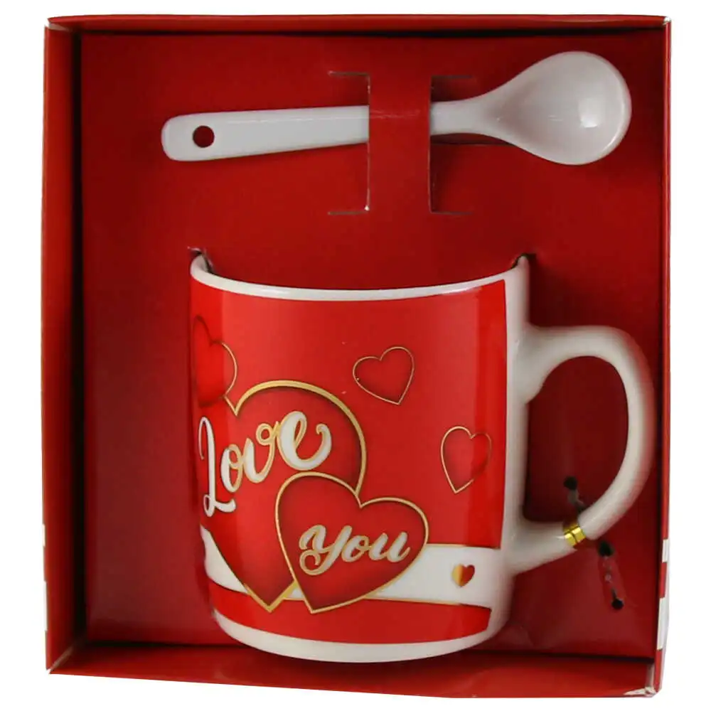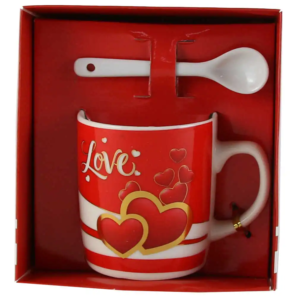 Cana cu lingurita, din ceramica „Love”, 7 CM, – Inimioare