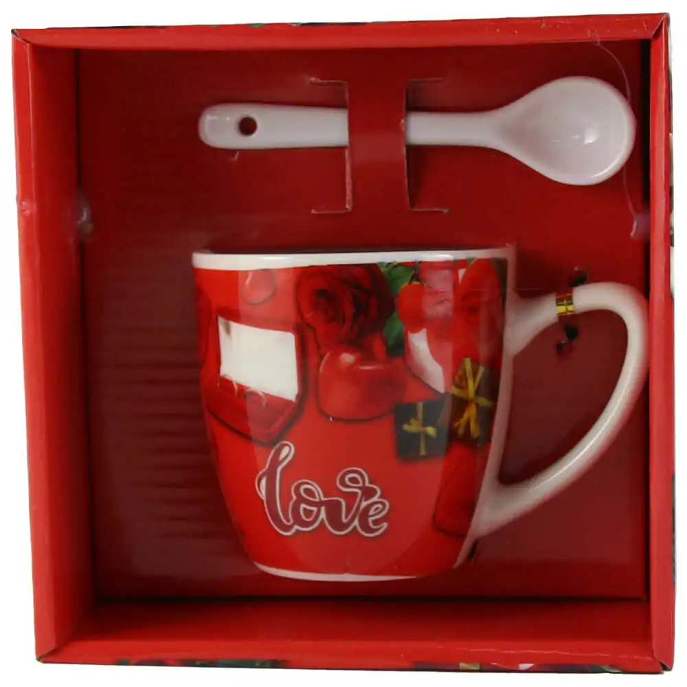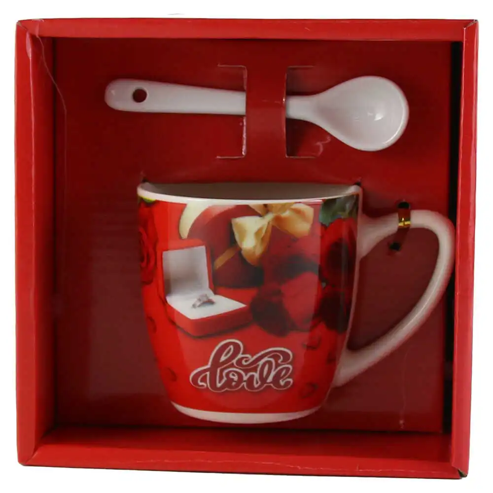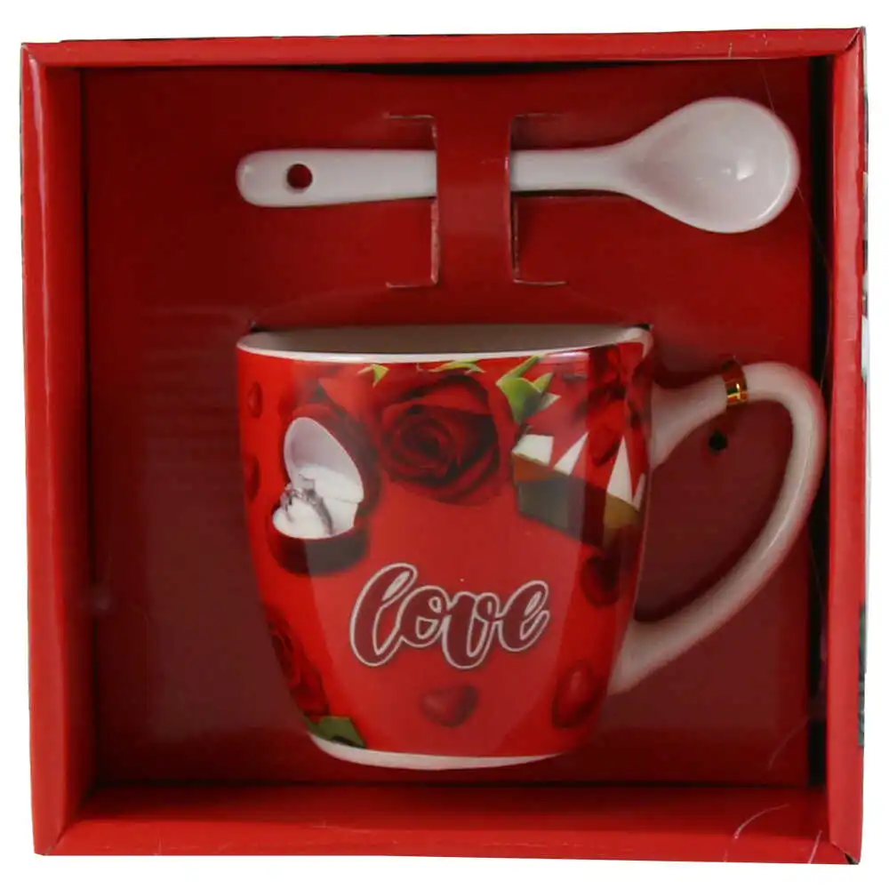 Cana cu lingurita, din ceramica „Love”, 7 CM, – trandafir & inel