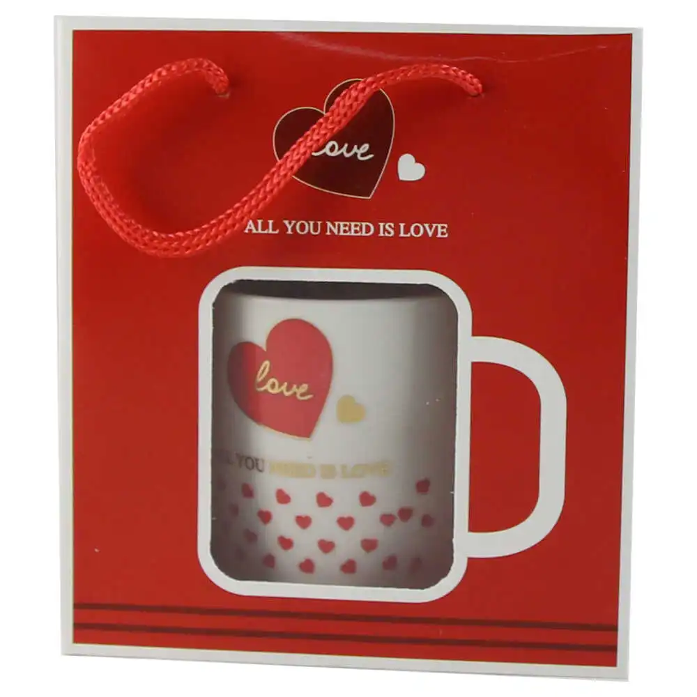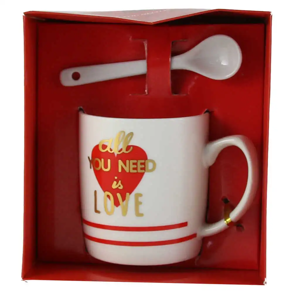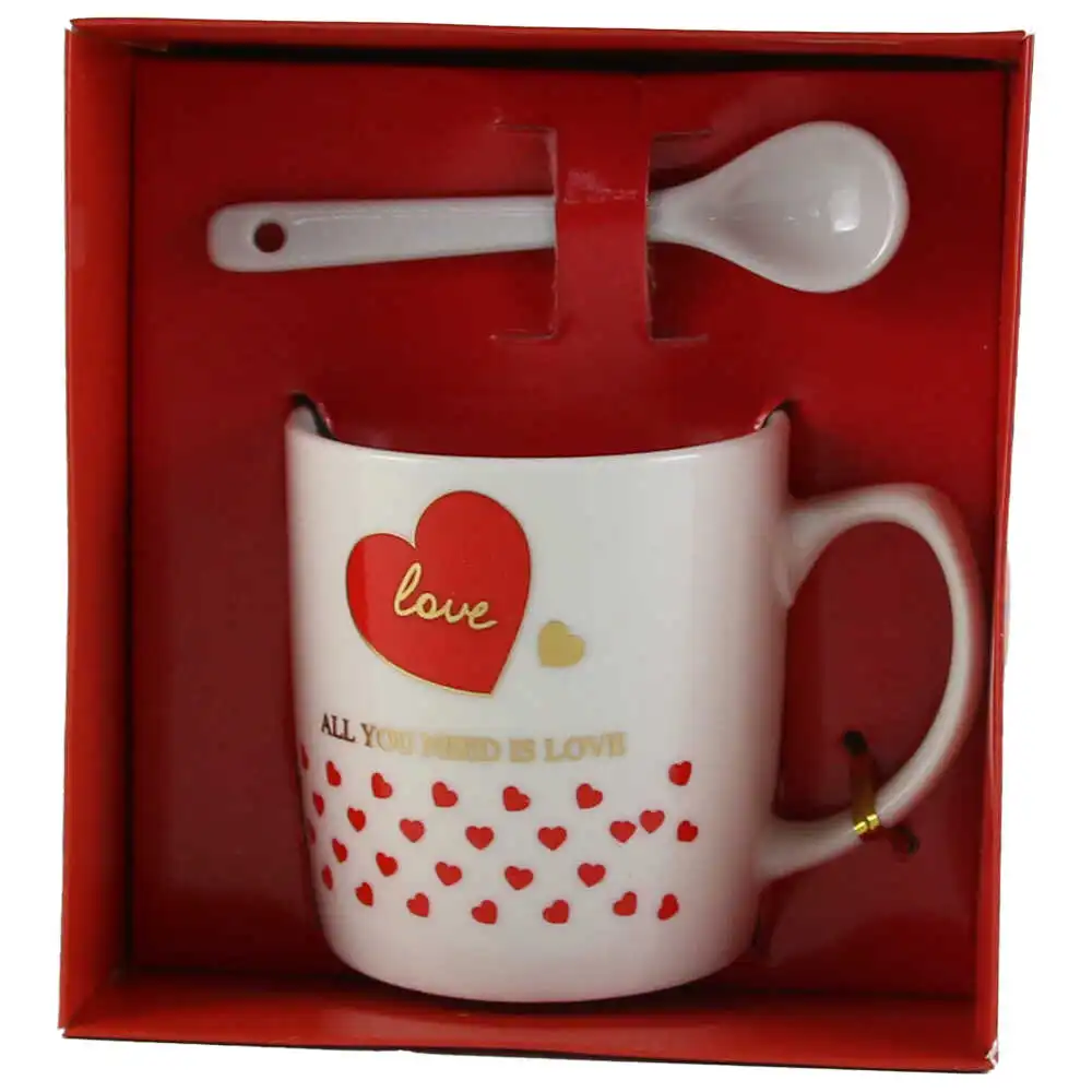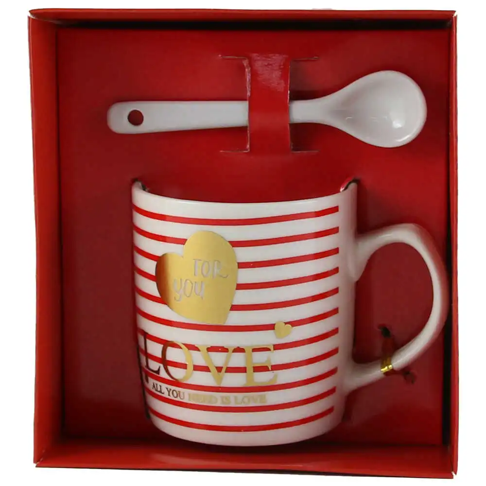 Cana cu lingurita, din ceramica „Love/Miss you”, 7 CM, – inimioare