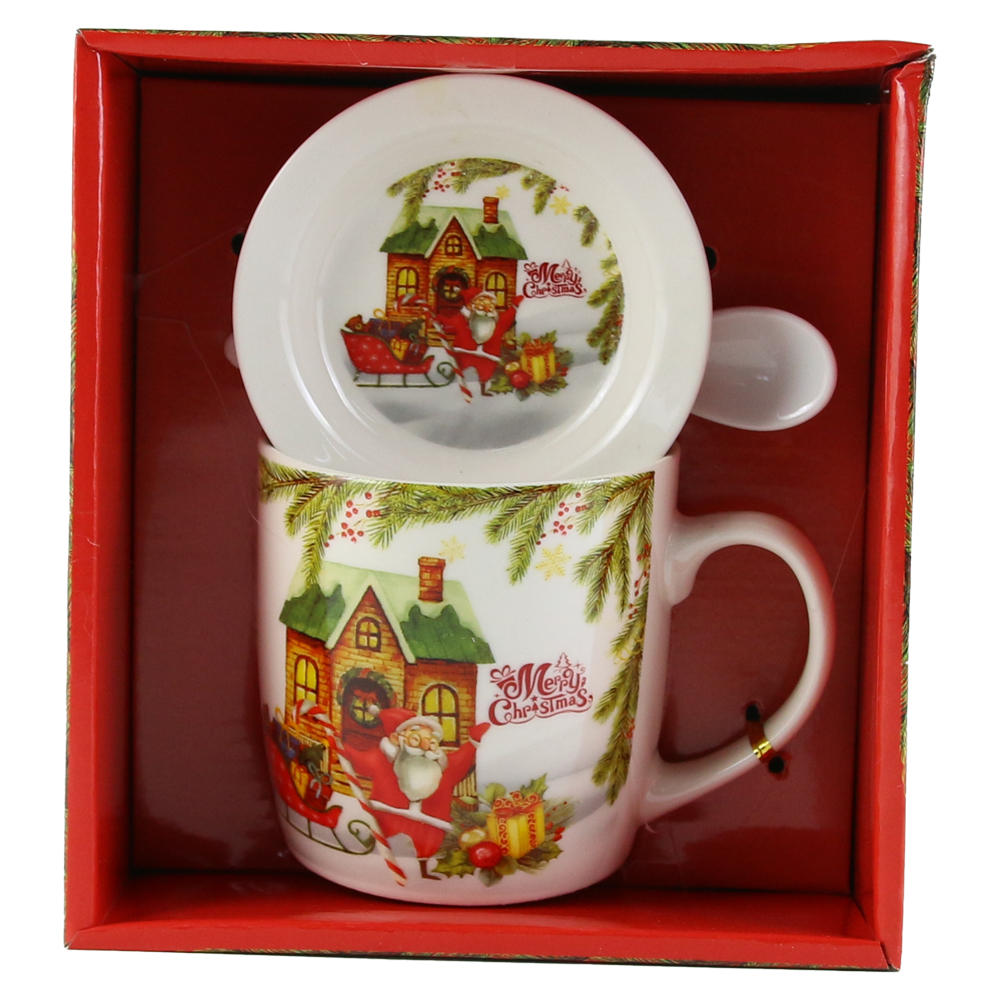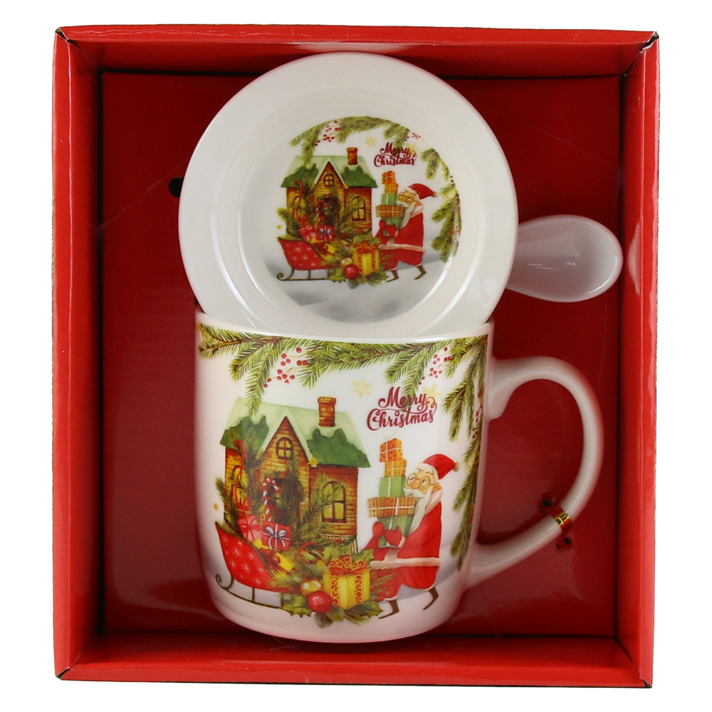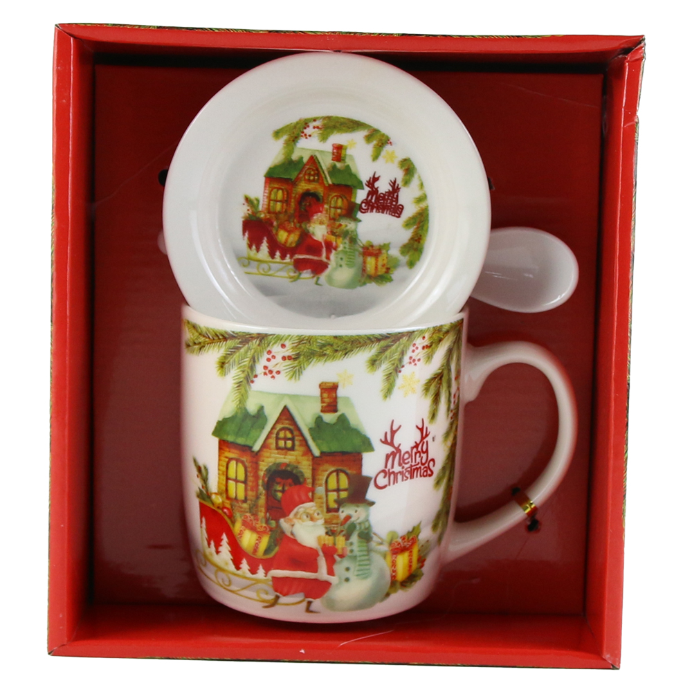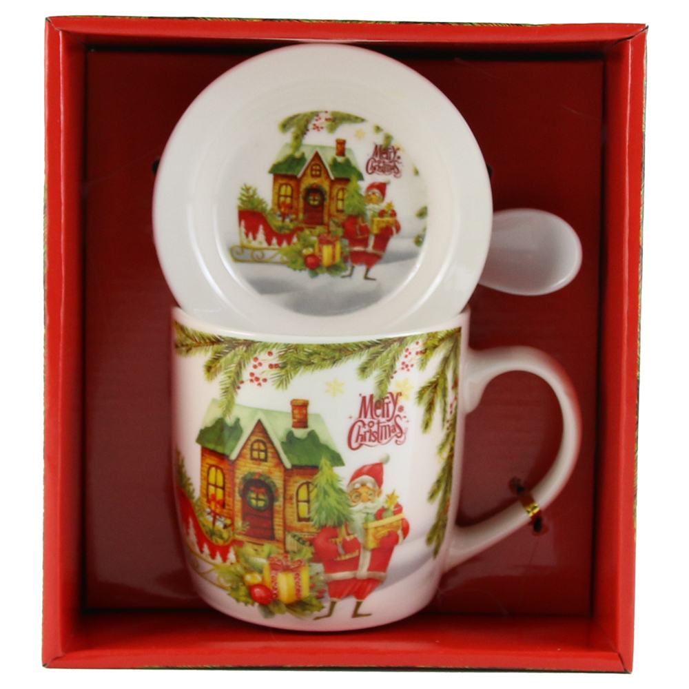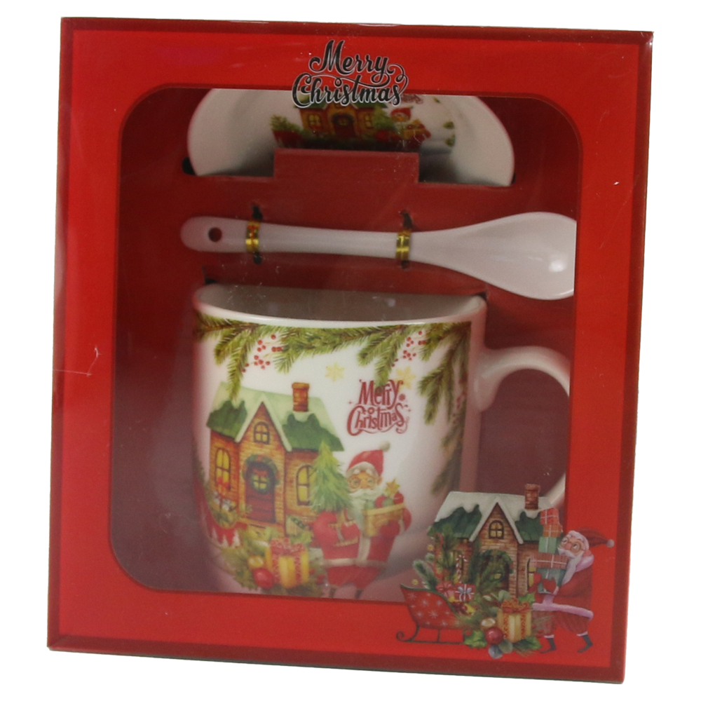 Cana de Craciun cu farfurie si lingurita, din ceramica, „Merry Christmas”, Casa Mosului