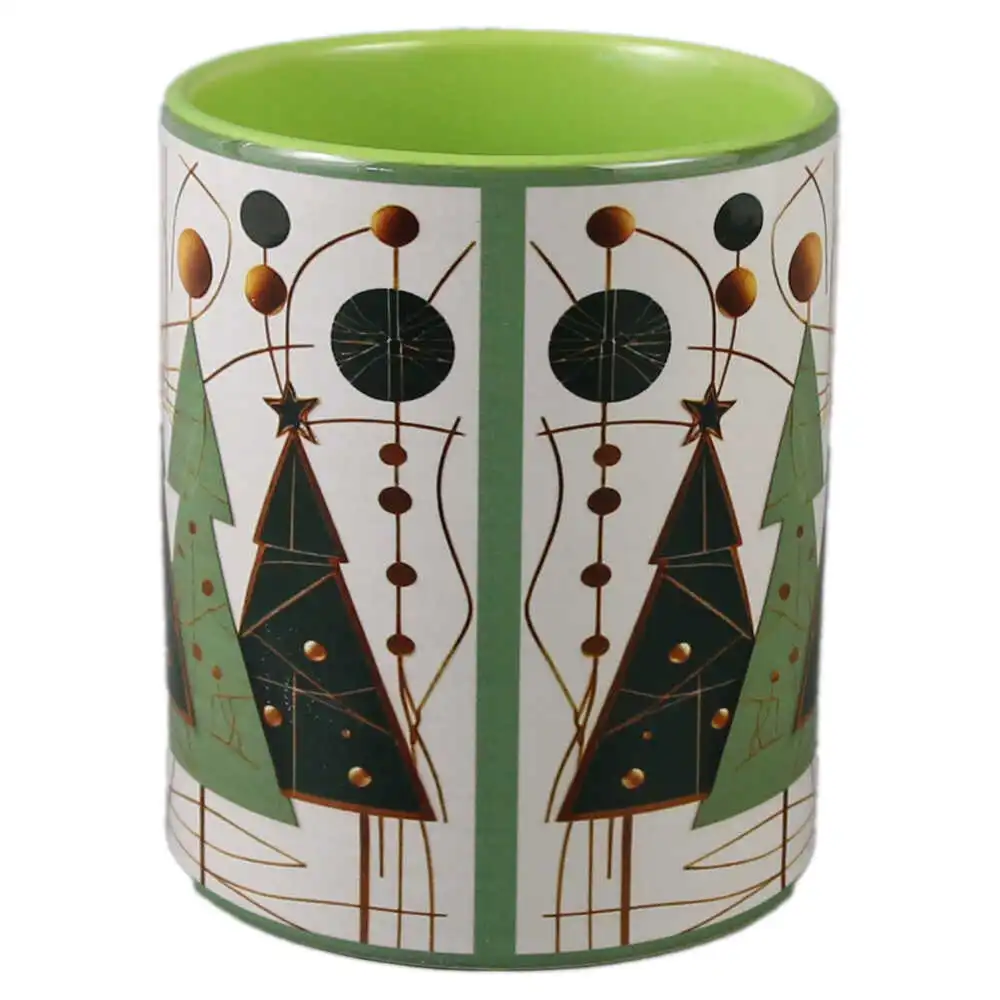 Cana de Craciun din ceramica, 330 ml, Brazi geometrici, verde
