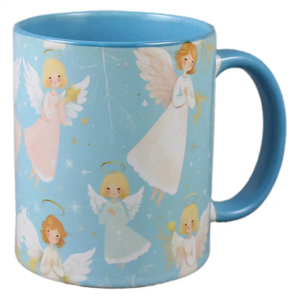 Cana de Craciun din ceramica, 330 ml, Ingerasi, albastru deschis
