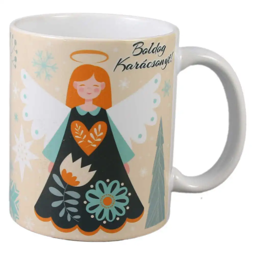 Cana de Craciun din ceramica „Boldog Karacsonyt!” 330 ml, Ingeras