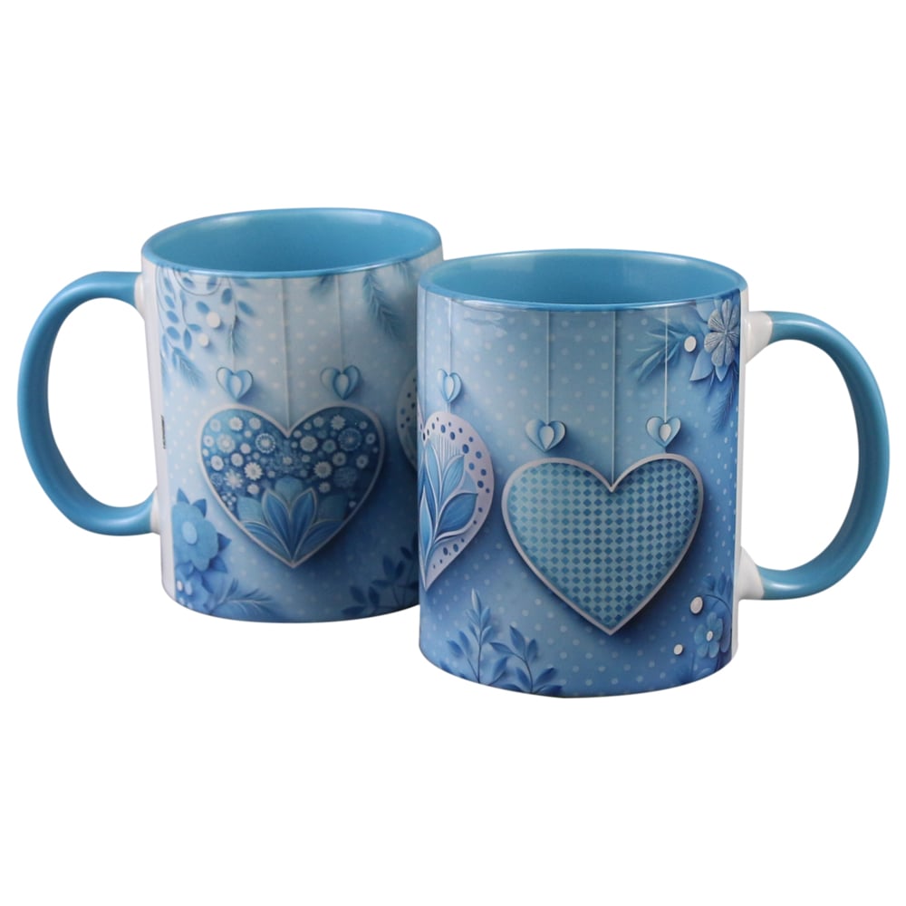 Cana din ceramica, 330 ml, cu inimioare albastre