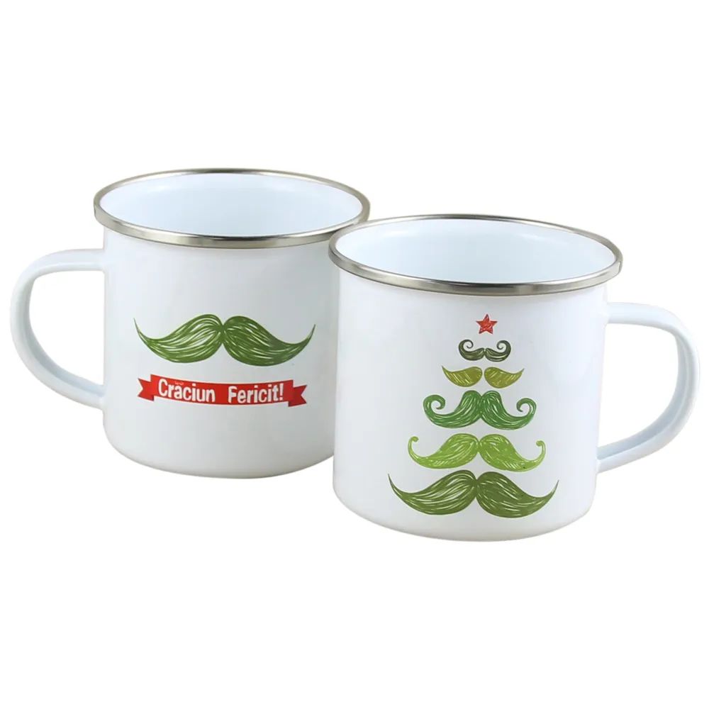 Cana metalica emailata „Craciun Fericit” 300 ml, Mustata