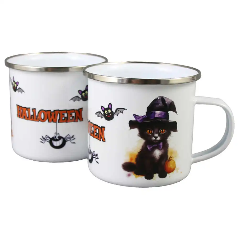 Cana metalica emailata „Halloween” 240 ml, Pisica neagra