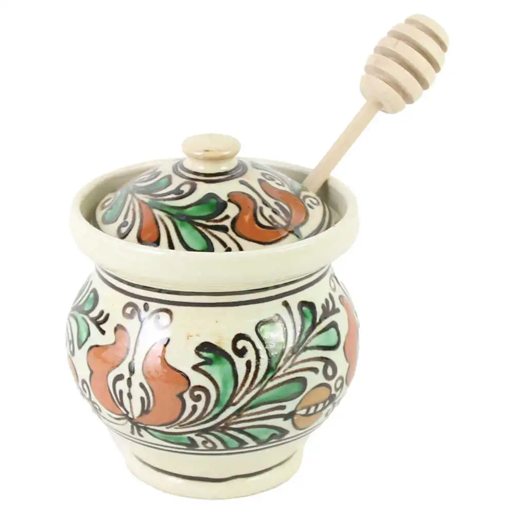 Cana miere din ceramica de corund, cu lingura lemn 13 CM