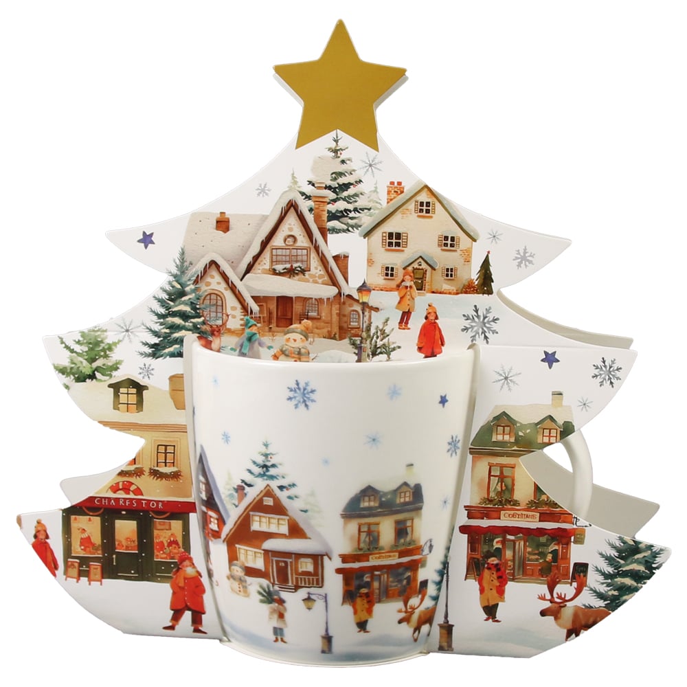 Cana portelan 400 ml, Christmas Village, in ambalaj decorativ, Sat de Craciun