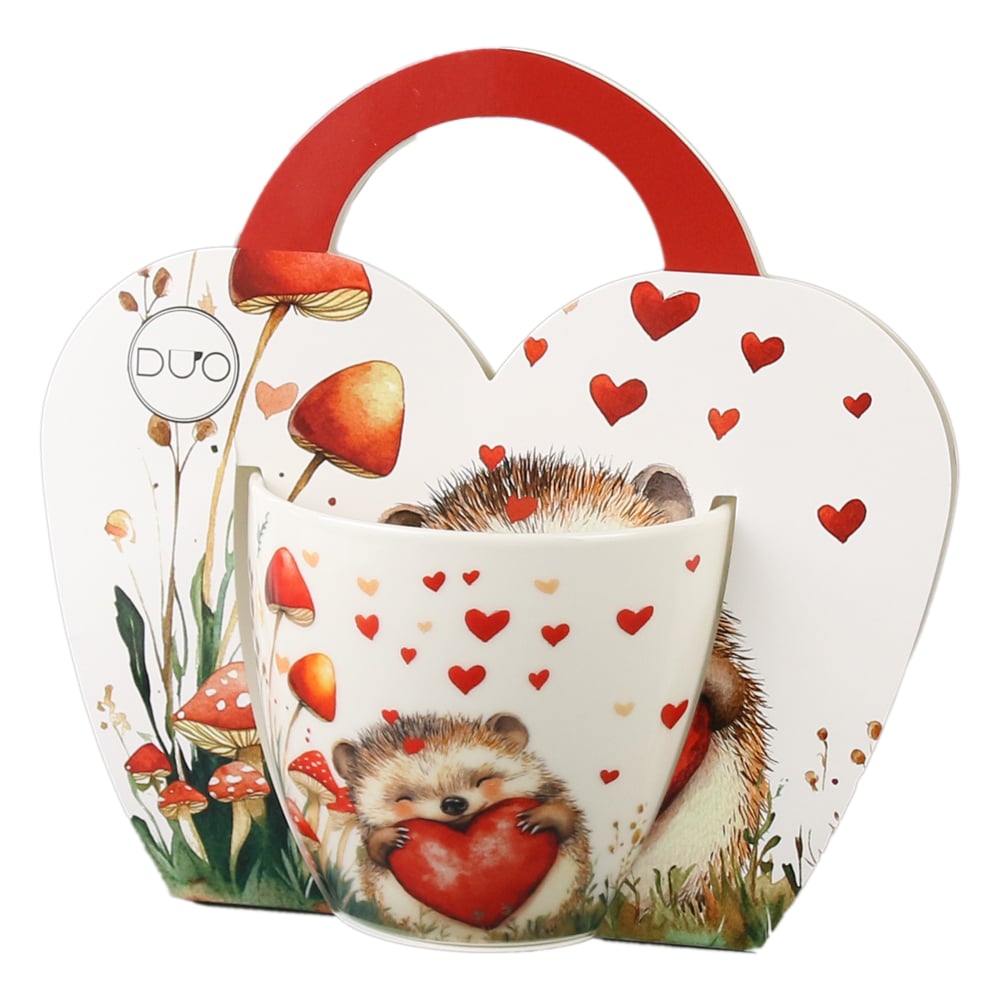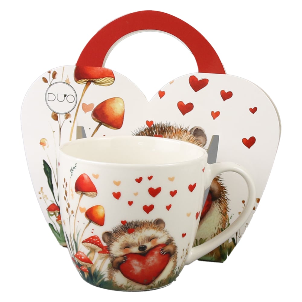 Cana portelan 460 ml, Arici cu inima, in ambalaj decorativ