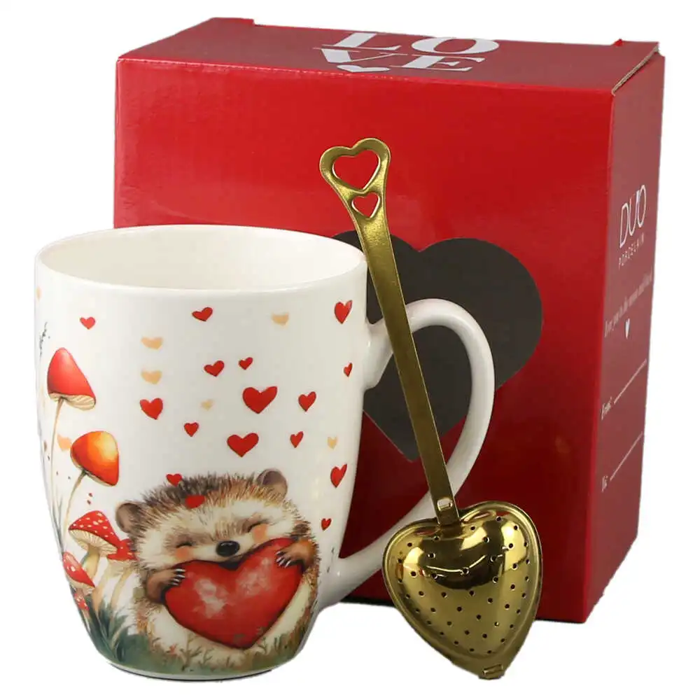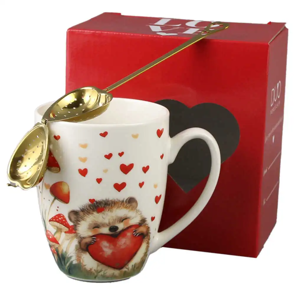 Cana portelan cu infuzor metalic inima, 360 ml, Arici cu inima, cu cutie cadou