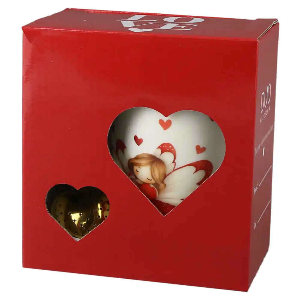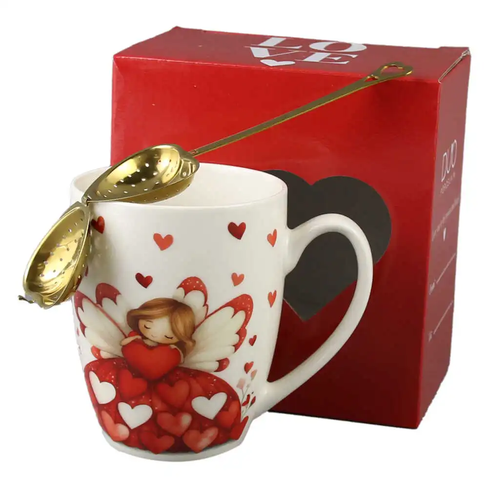 Cana portelan cu infuzor metalic inima, 360 ml, Ingeras cu inimioare, cu cutie cadou
