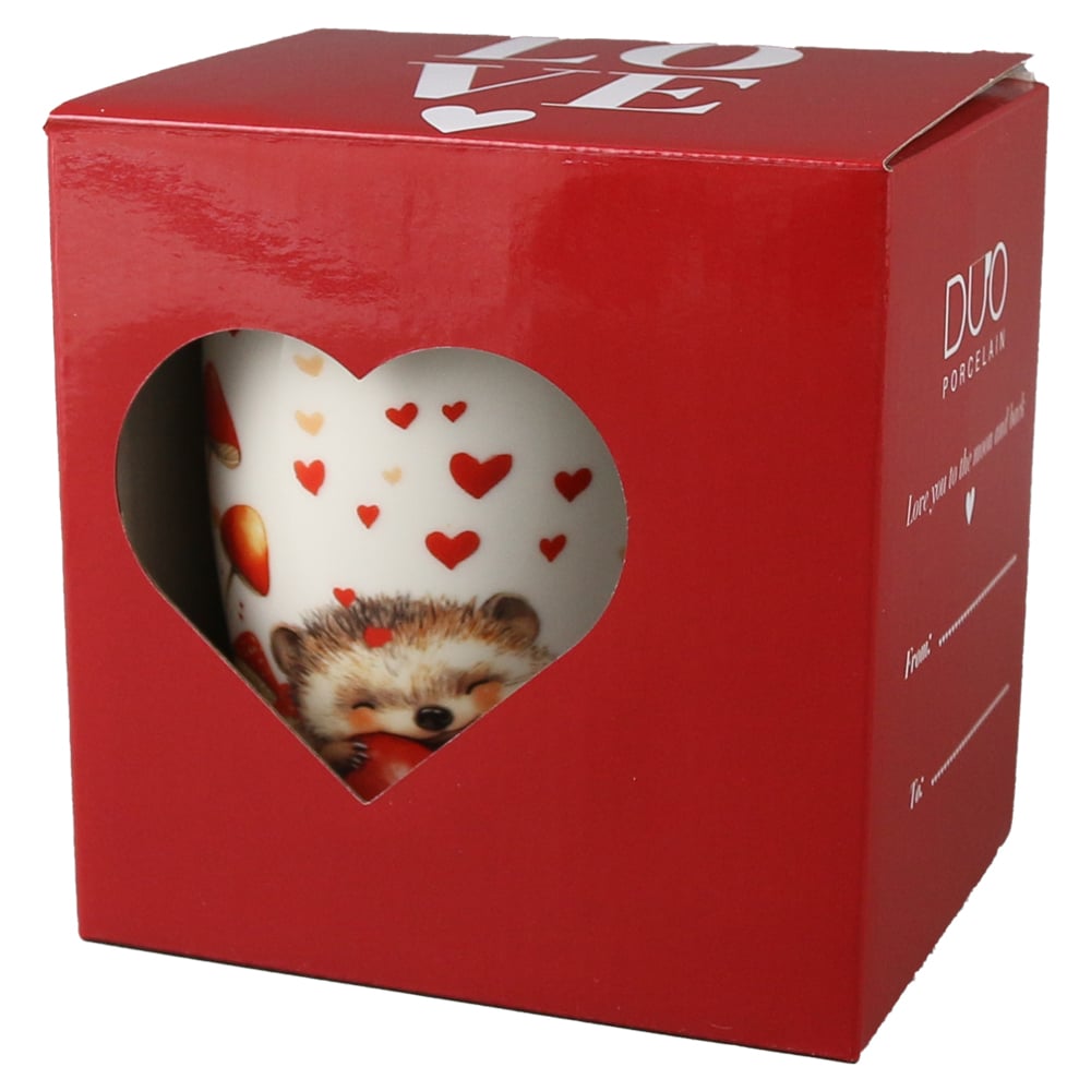 Cana portelan cu infuzor metalic si capac, 360 ml, Arici cu inima, cu cutie cadou